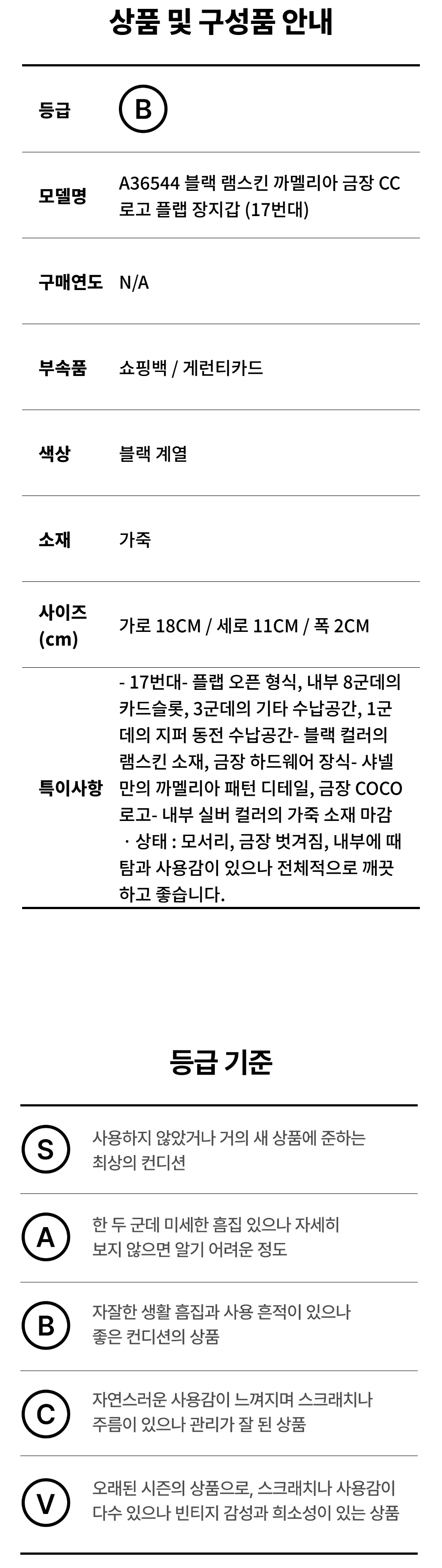 샤넬 A36544 블랙 램스킨 에르메스 금장 CC로고 플랩 장지갑 (17번대)