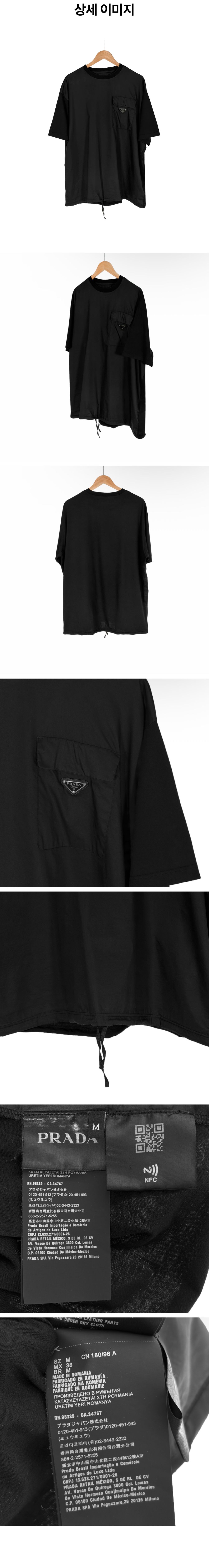 프라다 리나일론 삼각로고 스트링 포켓 테크니컬 반팔 티셔츠 블랙