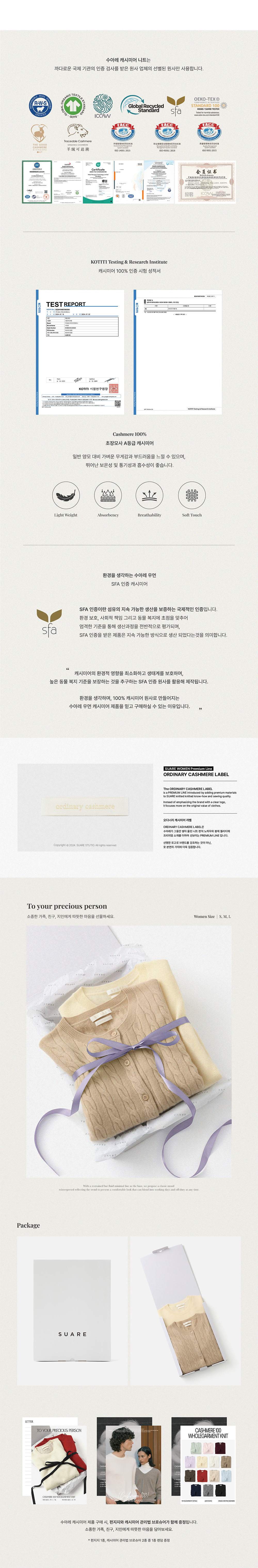 수아레 우먼 캐시미어 100 버튼 카라 니트 브라운