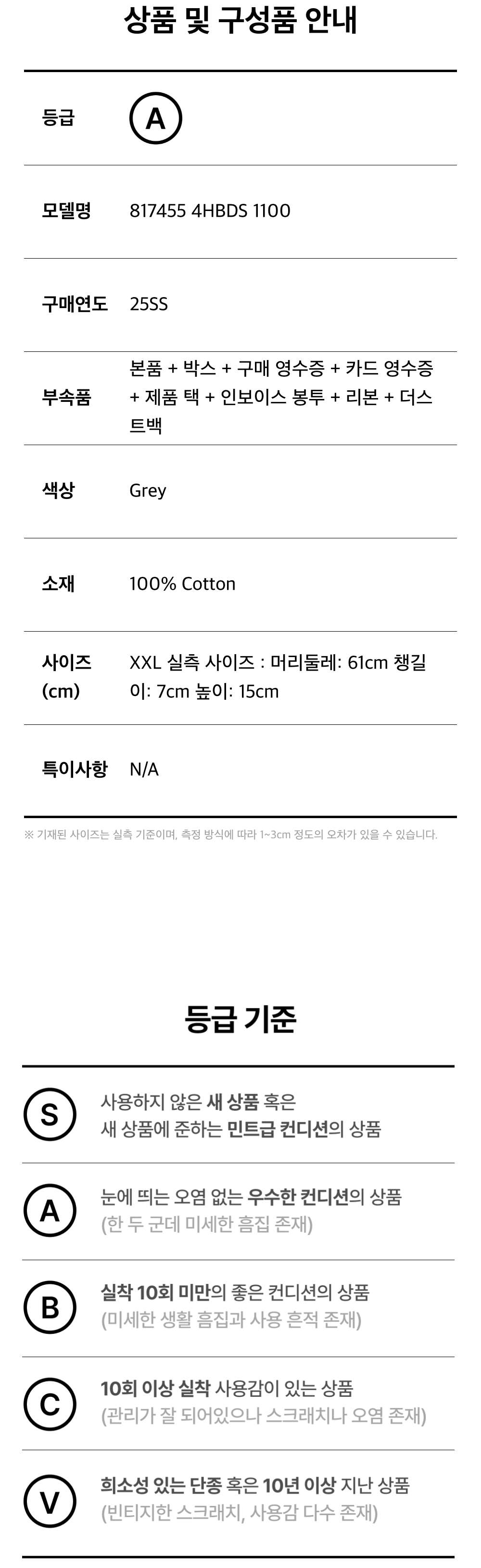 구찌 25ss 로고 베이스볼 코튼 자수 모자 볼캡 그레이 XXL