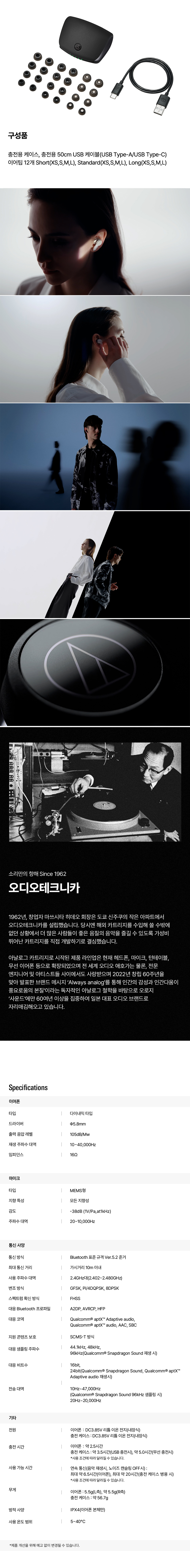 오디오테크니카 공식수입원 ATH-TWX9MK2 노이즈캔슬링 무선 이어폰 화이트