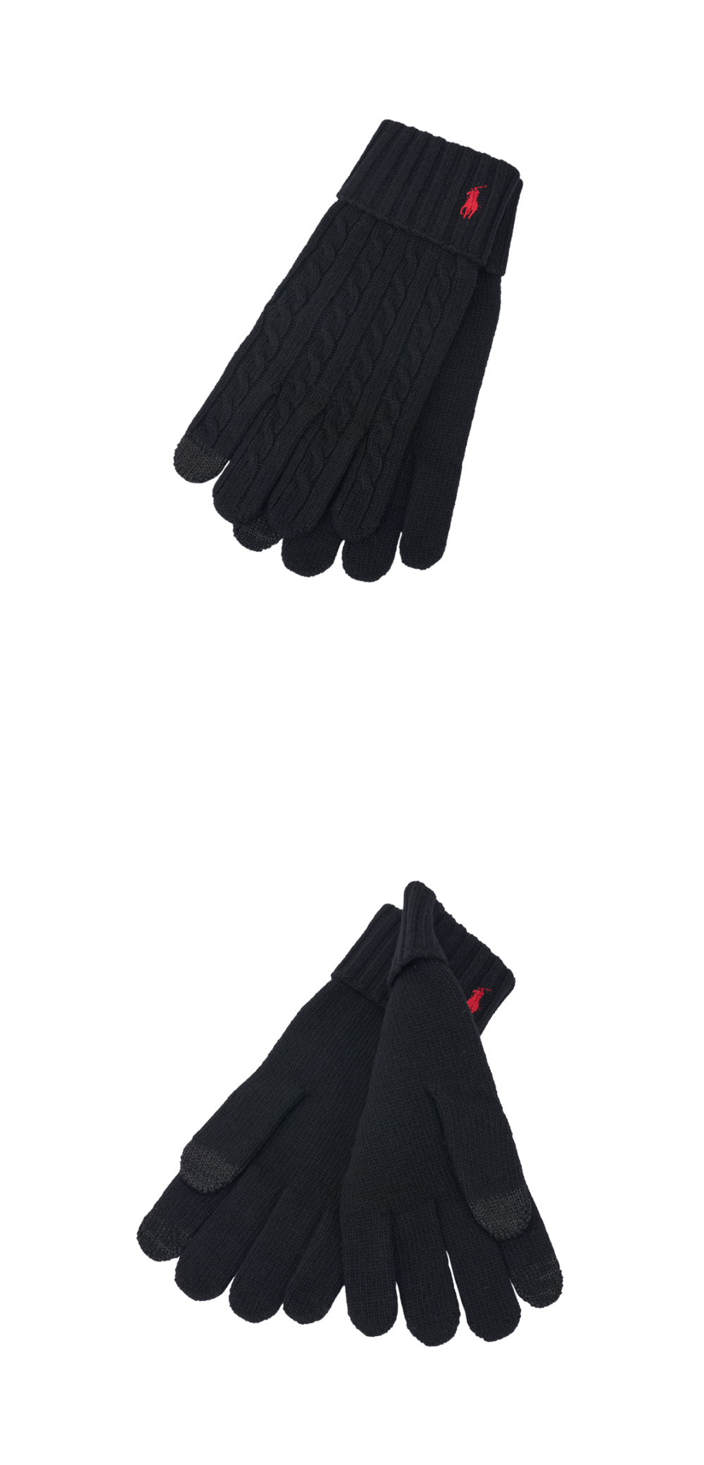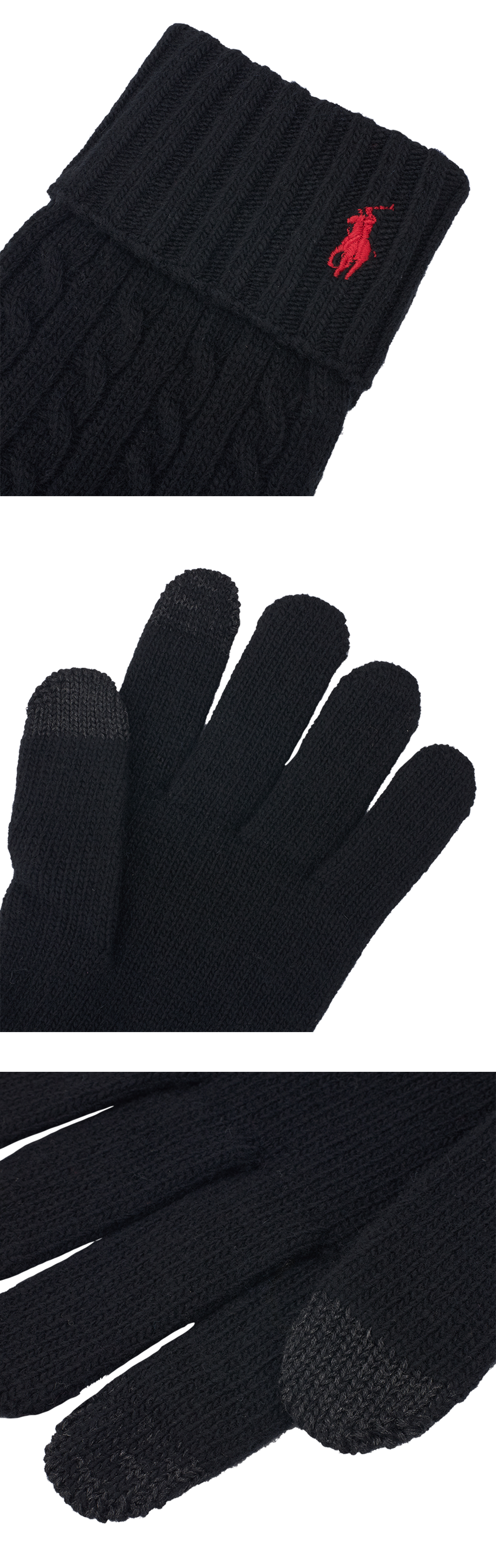 [10%적립] Polo Ralph Lauren Cable Knit Wool Blend Touch Gloves Polo Black - 26SS