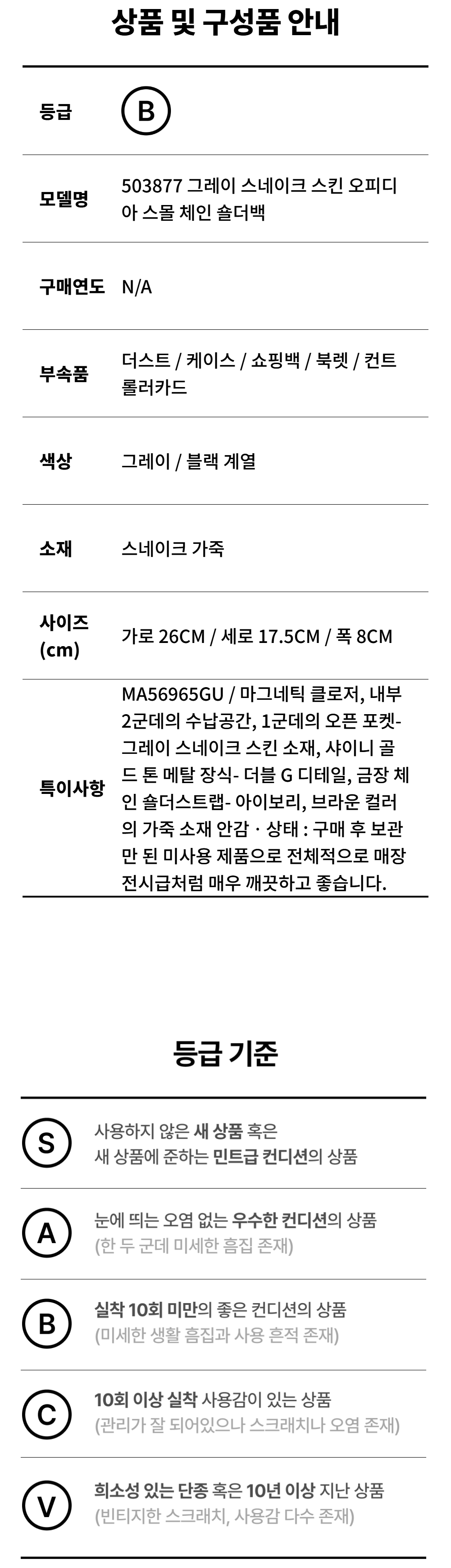 구찌 503877 그레이 스네이크 스킨 오피디아 스몰 체인 숄더백