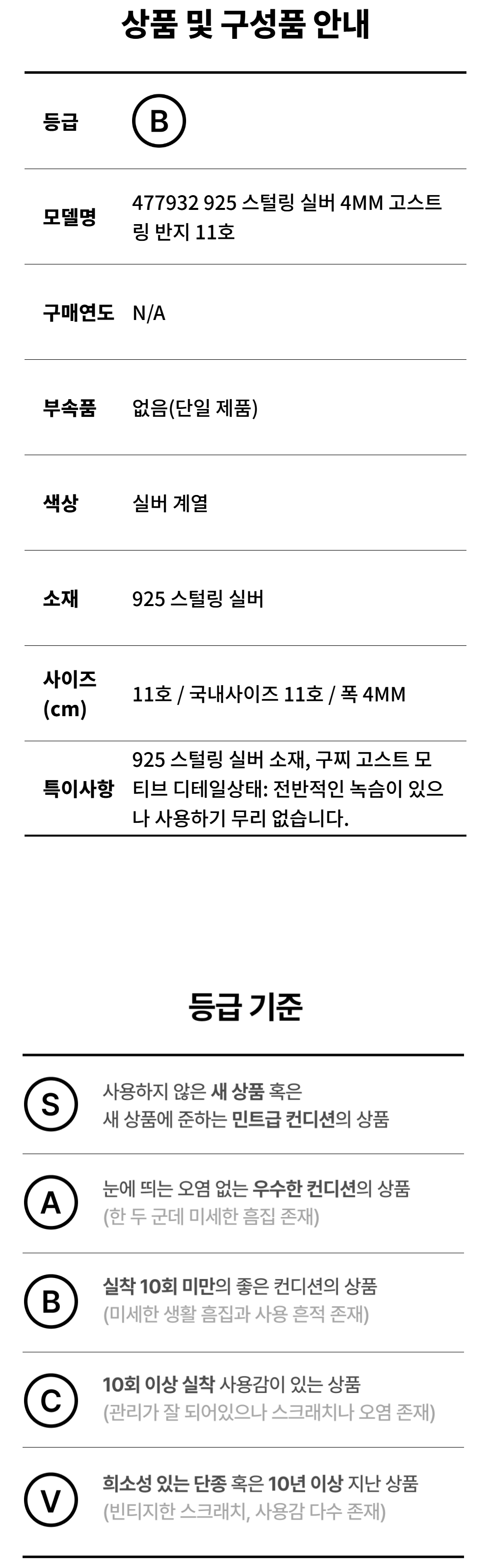구찌 477932 925 스털링 실버 4mm 고스트 링 11호