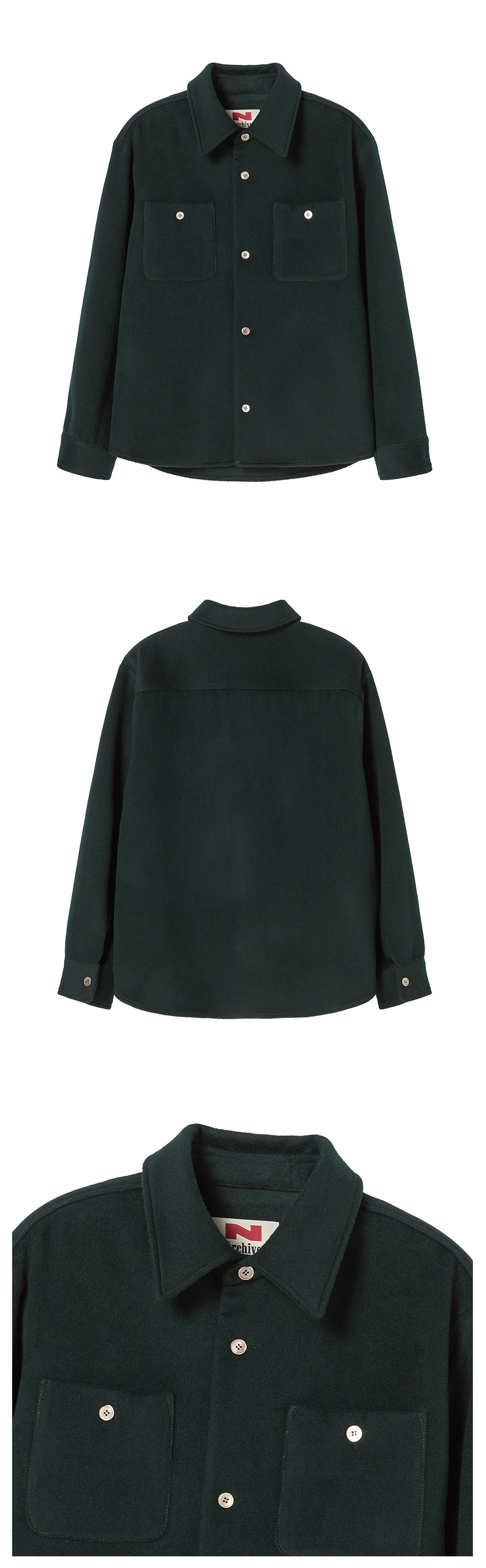 ㆍ컬렉션 라인의 럭셔리한 터치감이 매력적인 아우터 형 셔츠 ㆍ고급스러운 소재위에 배색 스티치로 준 포인트 디테일 ㆍ단독 착용은 물론, 이너로도 활용 가능한 레이어링 최적 아이템 ㆍ간절기부터 겨울까지 활용도 높은 아이템 ㆍ천연 자개 단추 사용 유니섹스 상품으로 제작 ㆍ여성분들은 M사이즈 착용 권장