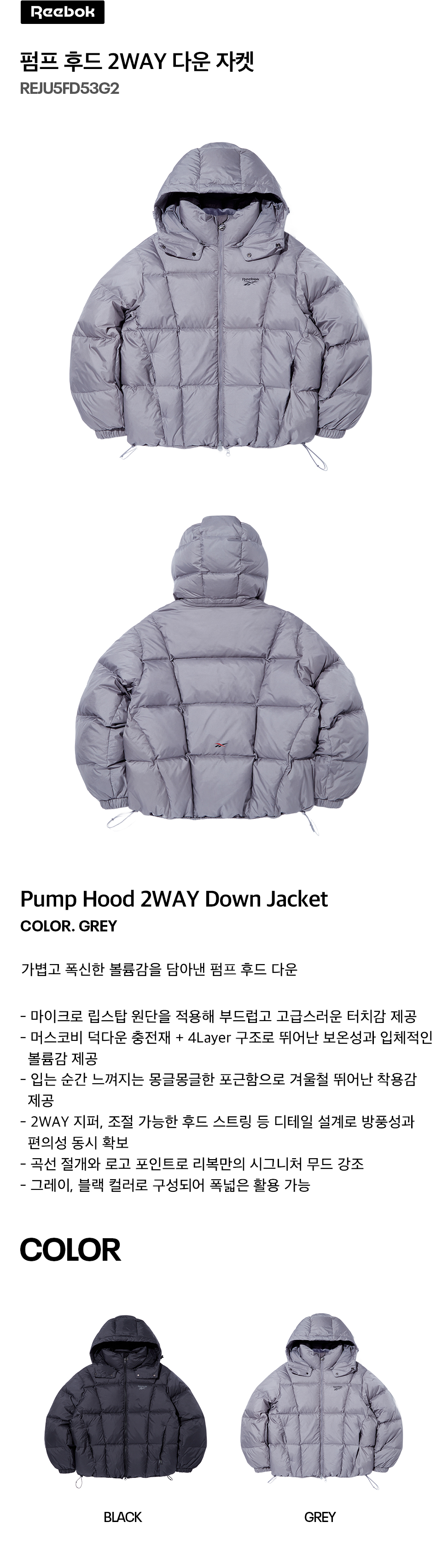 리복 펌프 후드 2WAY 다운 자켓 그레이