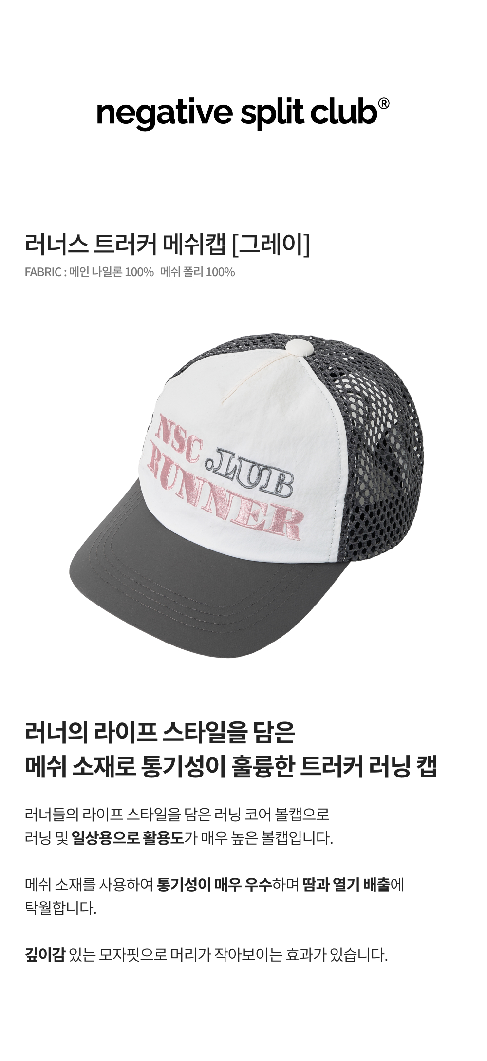 네거티브 스플릿 클럽 러너스 트러커 메쉬캡 그레이