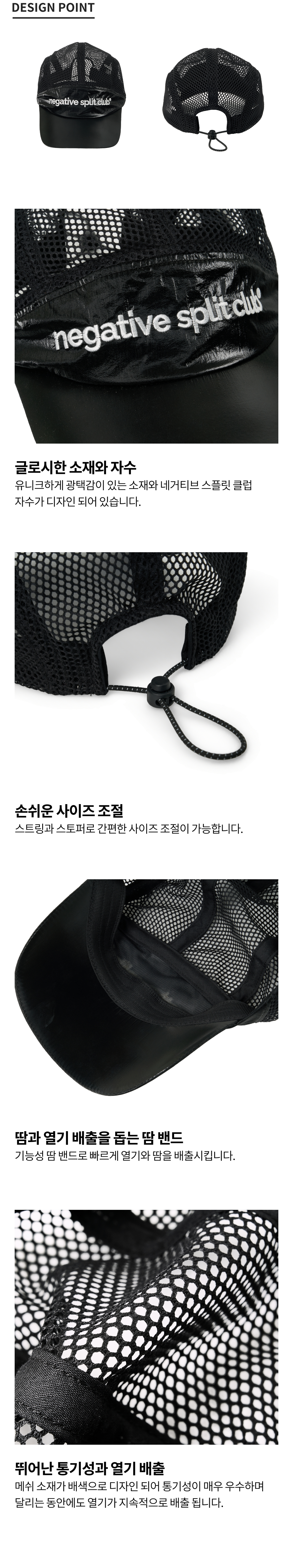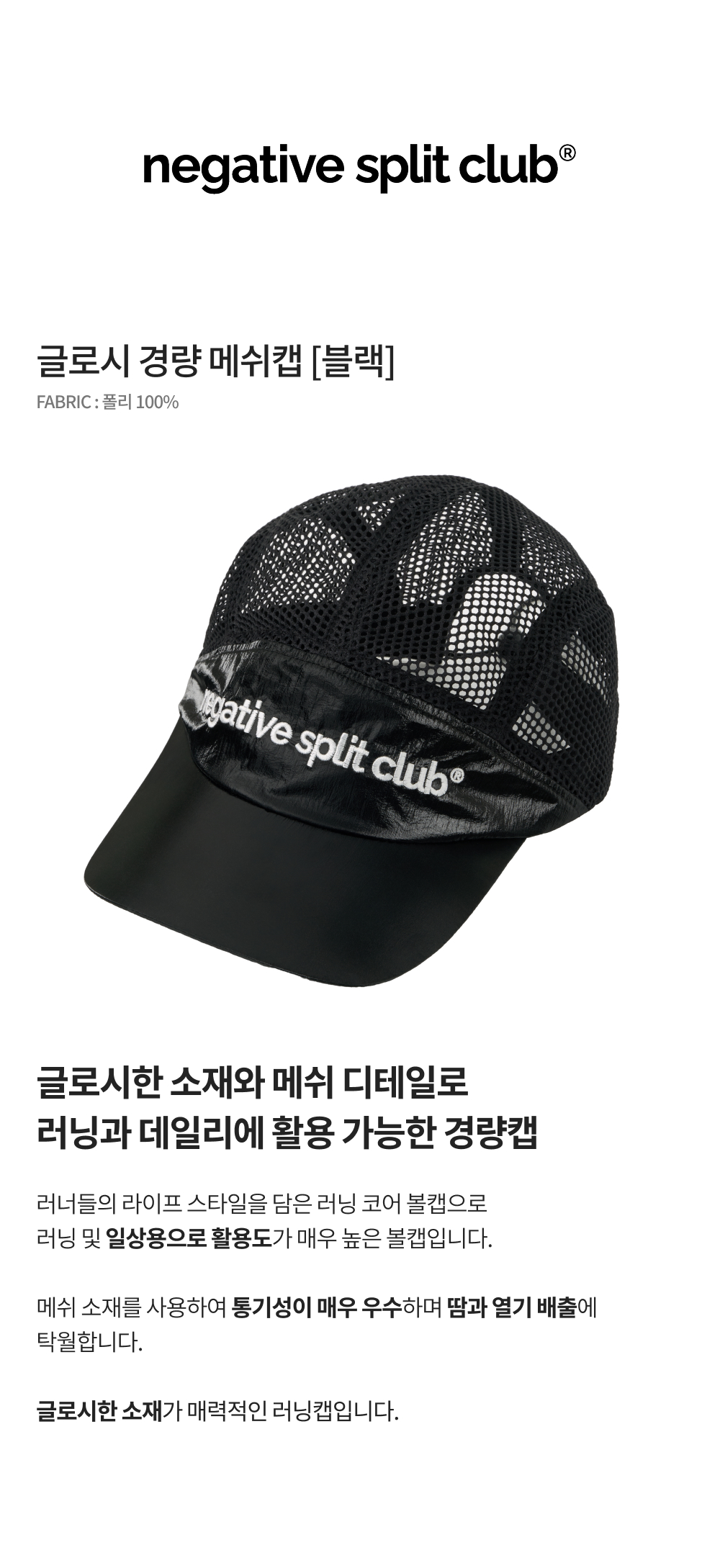 네거티브 스플릿 클럽 글로시 경량 메쉬캡 블랙