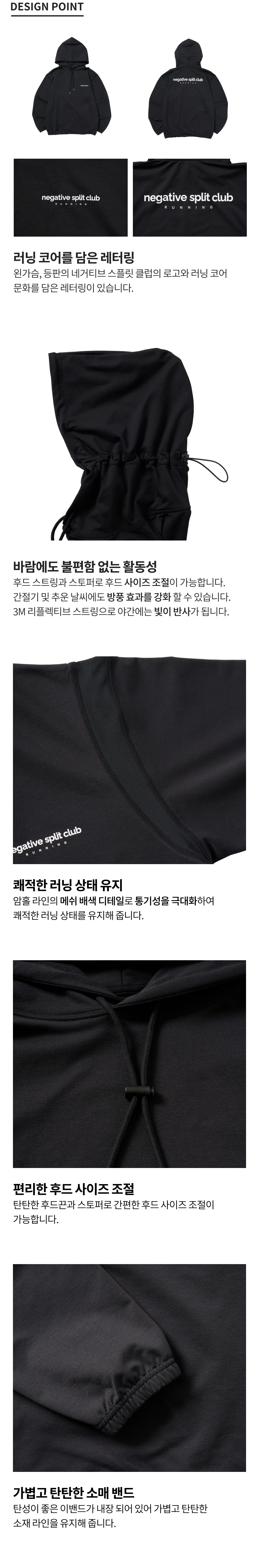 네거티브 스플릿 클럽 소프트 미드레이어 메쉬 배색 후드티 블랙