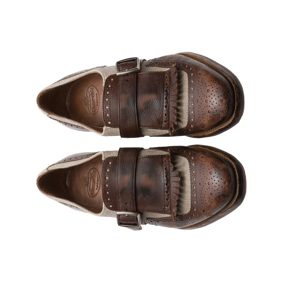 (W) Church's Shanghai W Vintage Glace and Linen Buckle Loafer Burnt Sienna Ecru