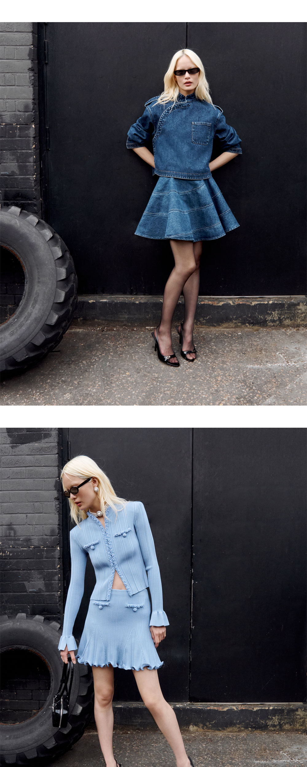셀프 포트레이트 우먼 플레어 데님 미니 스커트 블루 - 26SS