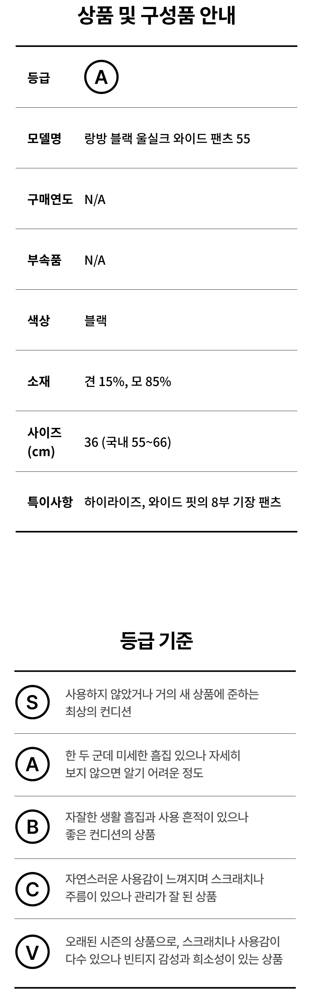 랑방 블랙 울 실크 와이드 팬츠 55/66 사이즈