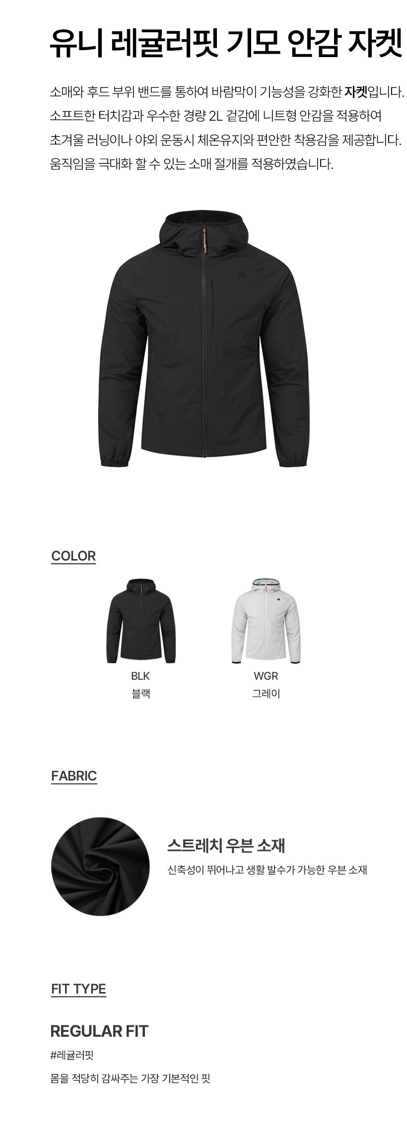 르꼬끄 스포르티브 유니 레귤러핏 기모 안감 자켓 - 그레이 QQ413EJKO1