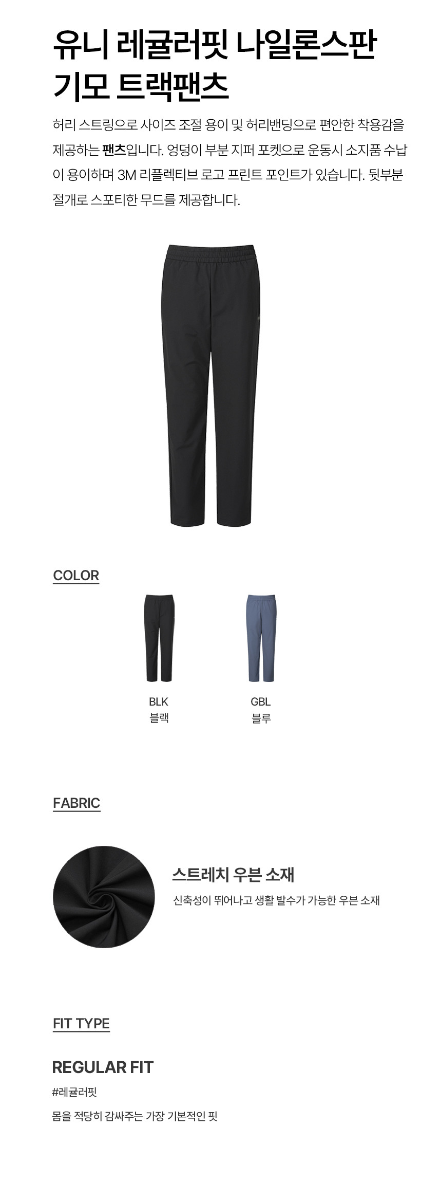 르꼬끄 스포르티브 유니 레귤러핏 나일론스판 기모 트랙팬츠 - 블랙 QQ423EPTO5