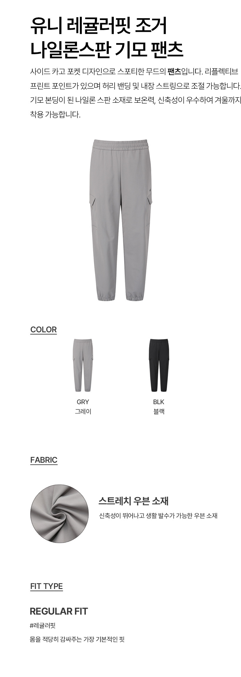 르꼬끄 스포르티브 유니 레귤러핏 조거 나일론스판 기모 팬츠 - 그레이 QQ423EPTO2