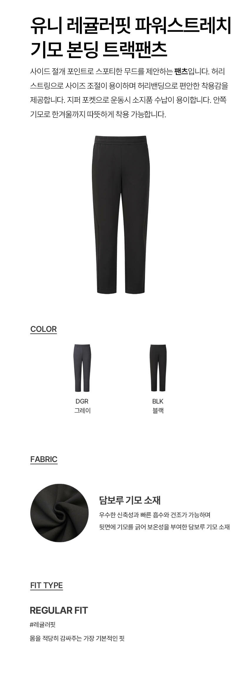 르꼬끄 스포르티브 유니 레귤러핏 파워스트레치 기모 본딩 트랙팬츠 - 블랙 QQ423EFPO2