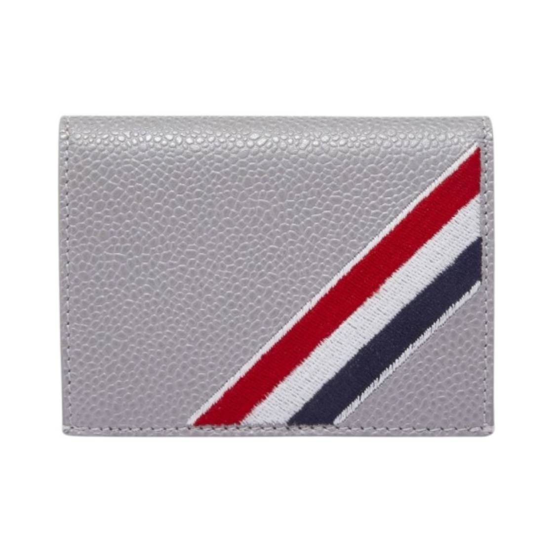Thom Browne RWB Diagonal Embroidery in Pebble Grain Leather Double Card Holder Light Grey