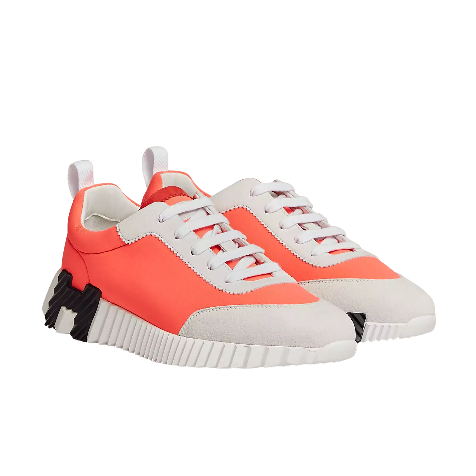 (W) Hermes Bouncing Sneakers Canvas Suede Goatskin & Rose Neon Blanc