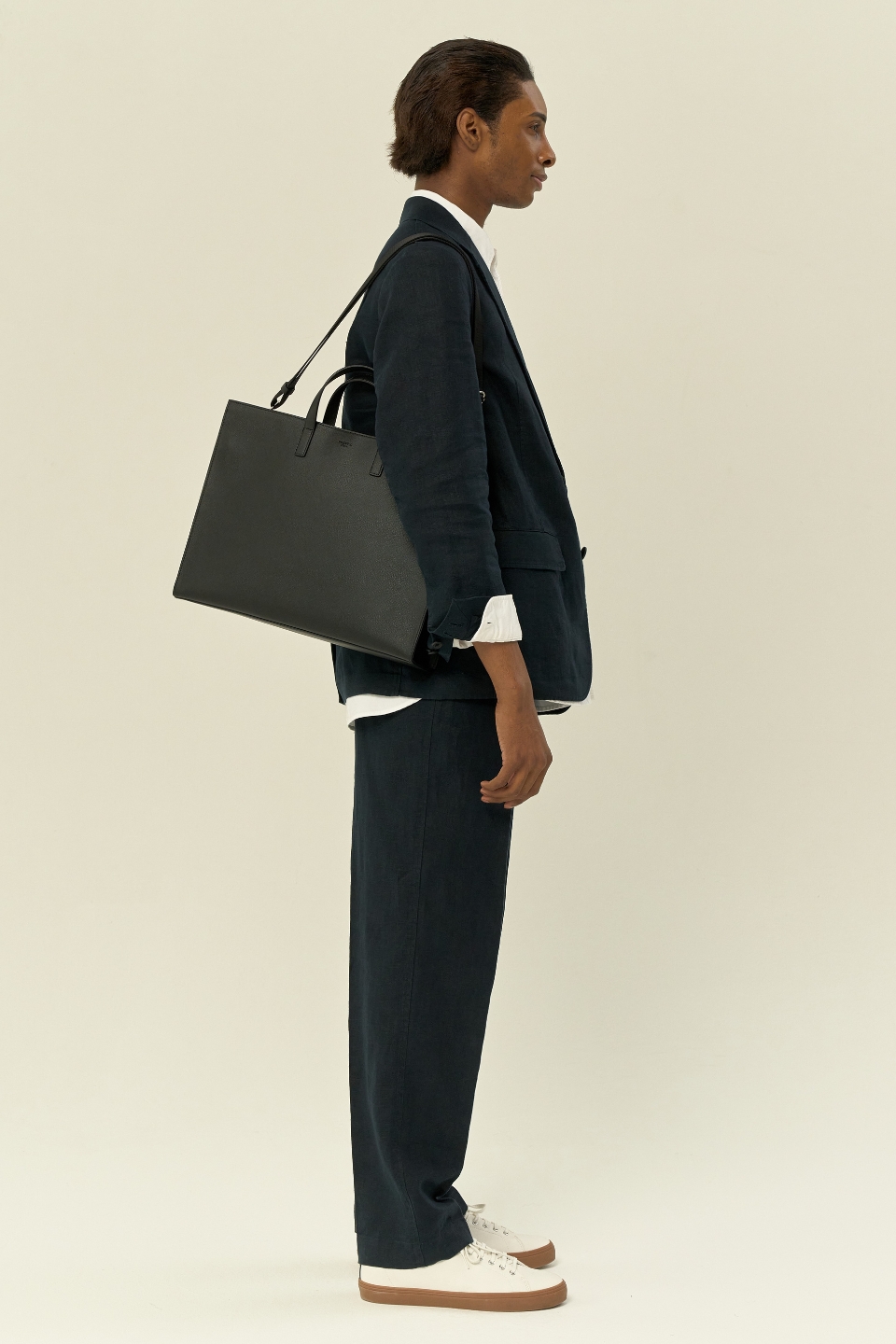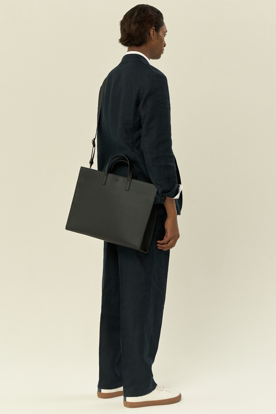스탠다드 디자인의 가로로 길고 폭이 넓은 XL 사이즈 토트백 ✓16인치 노트북(가로~36cm) 수납 ✓내장 자석 여닫이 방식 ✓작은 소지품 수납이 가능한 내부 포켓 ✓노트북, 태블릿PC 분리 수납 공간 ✓3way 착용 및 탈부착 가능한 나일론 스트랩 ✓Made in Korea ✓겉감: PU(무독성, 자체 후가공), 나일론(스트랩) ✓안감: 면, PU(무독성) ✓가로*세로*너비: 39*29.5*10(cm), 모델 남성: 186cm, 여성: 174cm ✓무게: 750g, 스트랩 포함 850g ✓생활방수, 방염/방오성 ✓직사광선, 열, 습기에도 강합니다. ✓직접적인 눌림 압력(구겨짐), 날카로운 것을 피해주세요. ✓세탁은 추천드리지 않습니다.