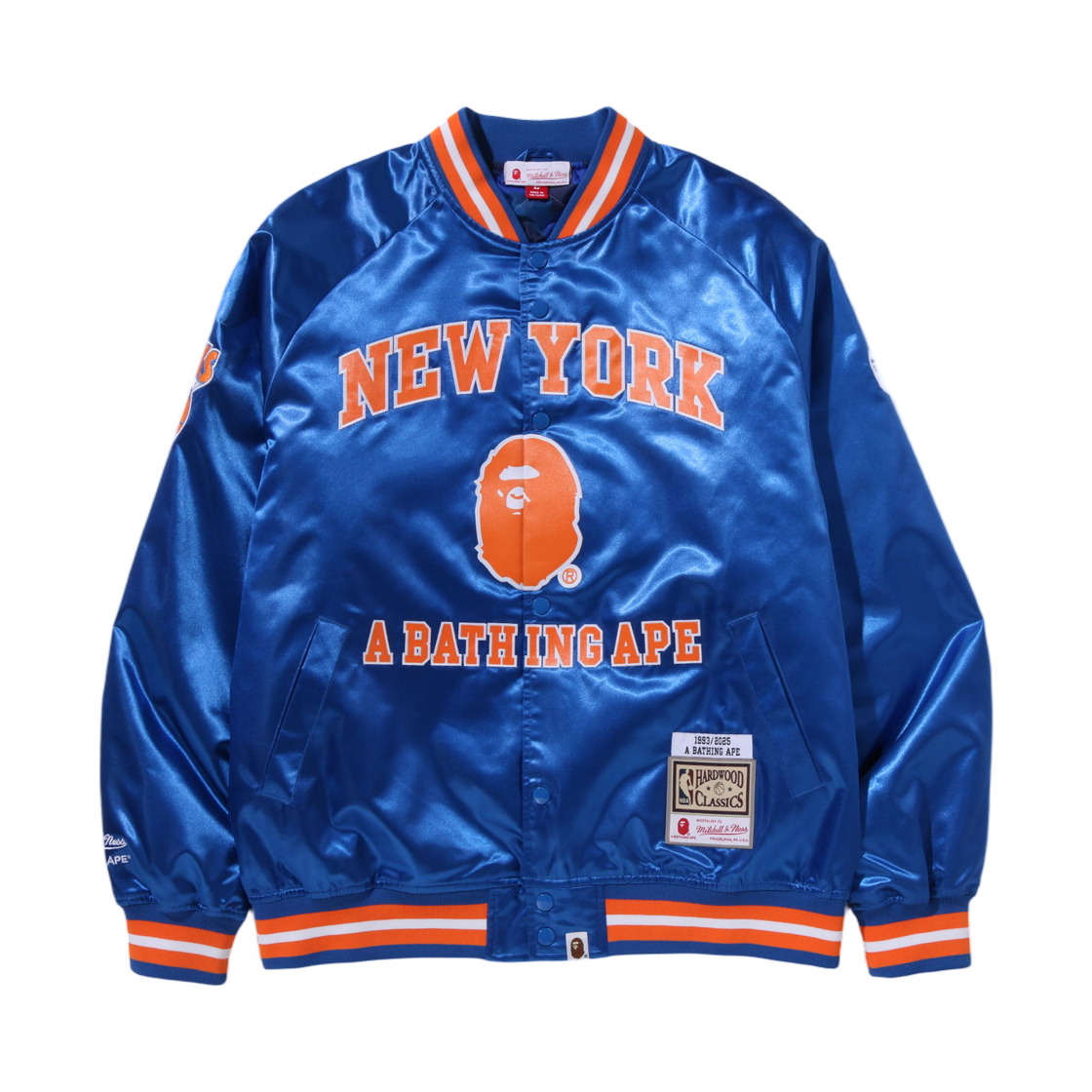 베이프 x 미첼 앤 네스 뉴욕 닉스 사틴 자켓 블루