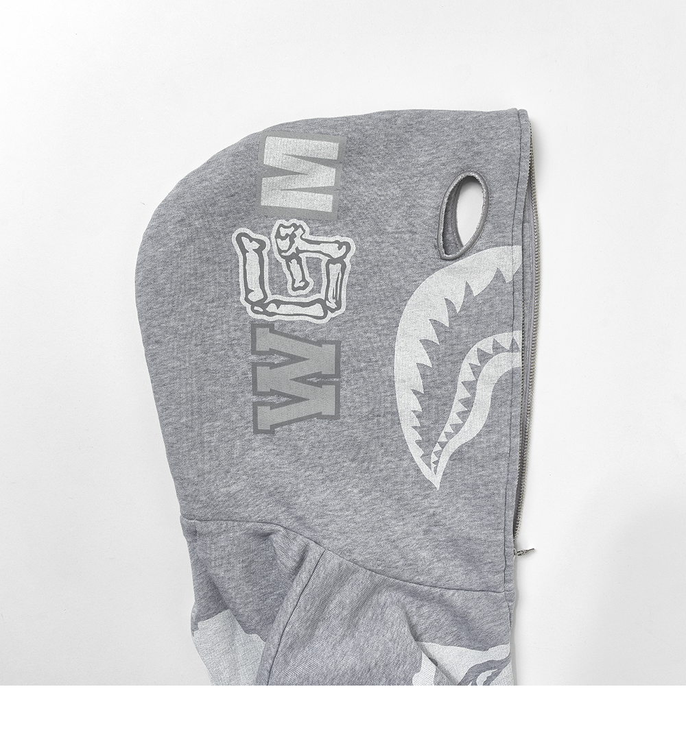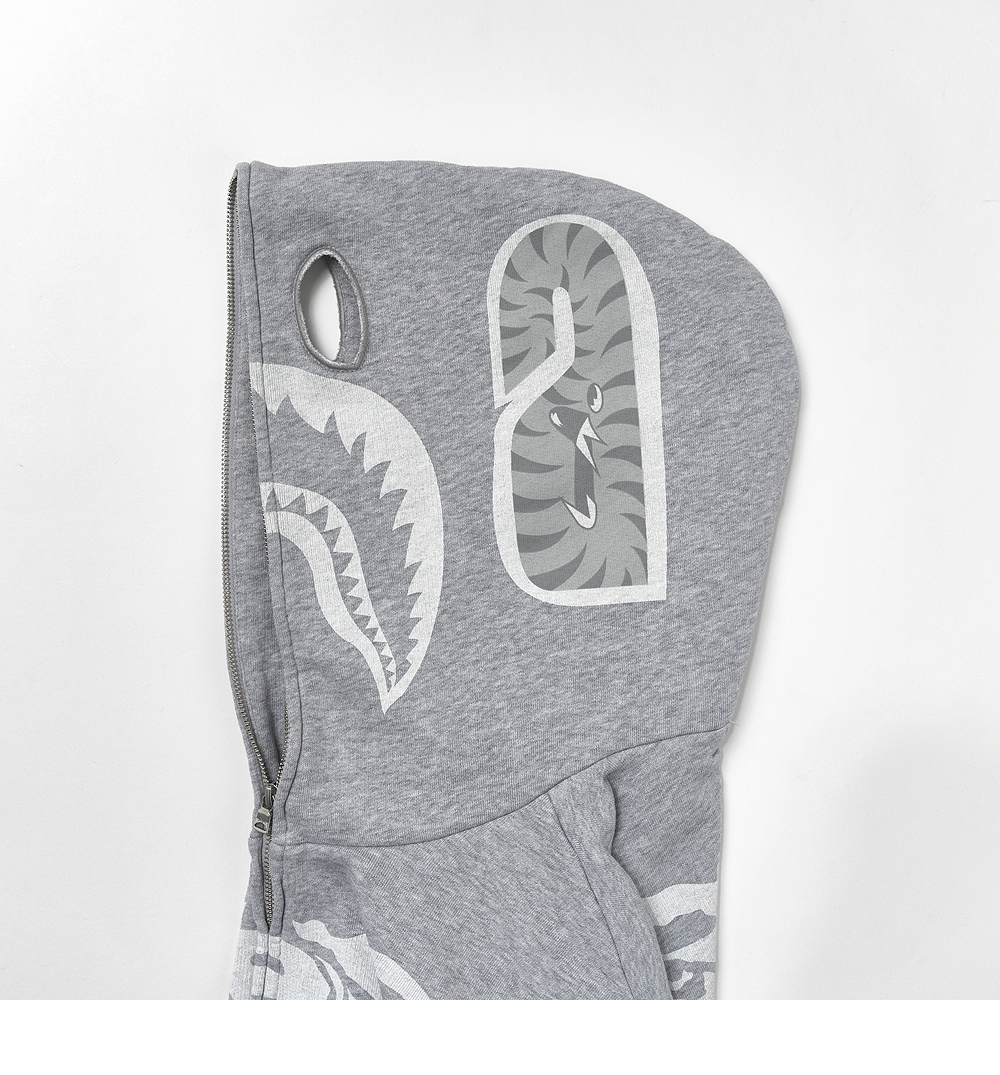 베이프 스켈레톤 샤크 헤비 워시드 크롭 핏 풀 집 후드 그레이