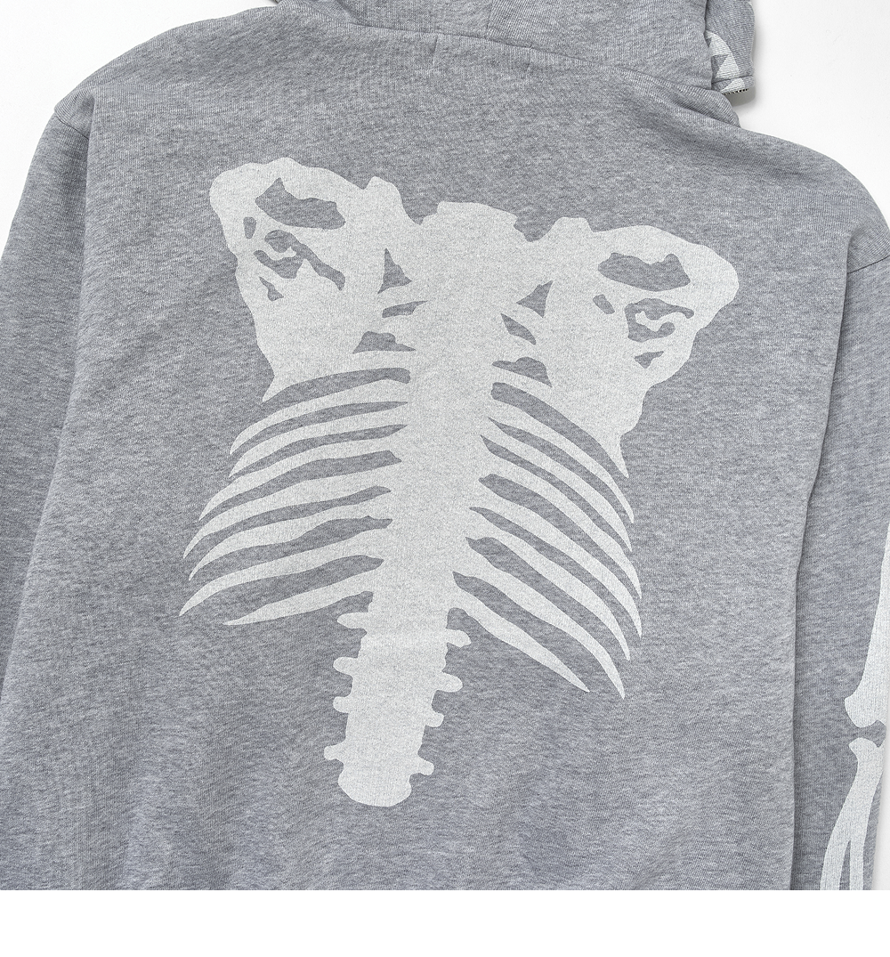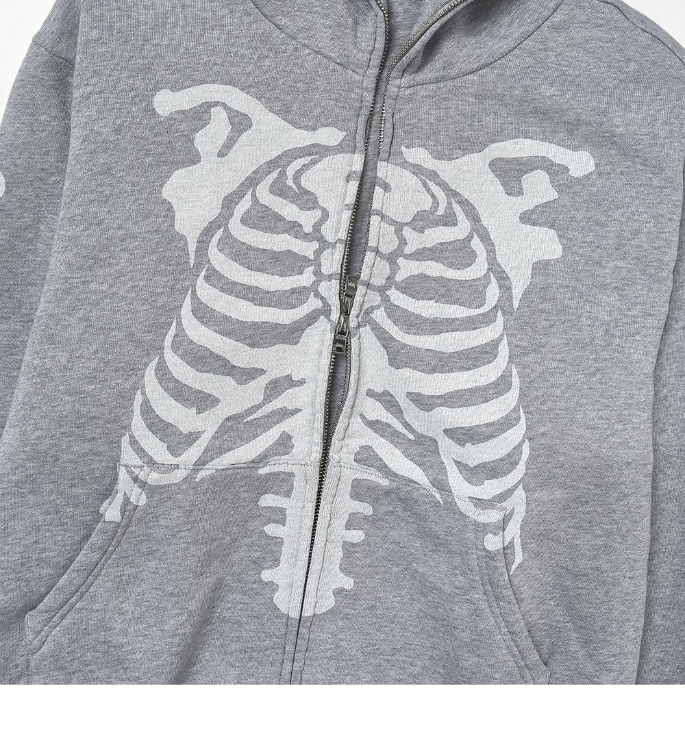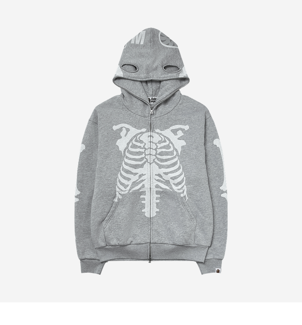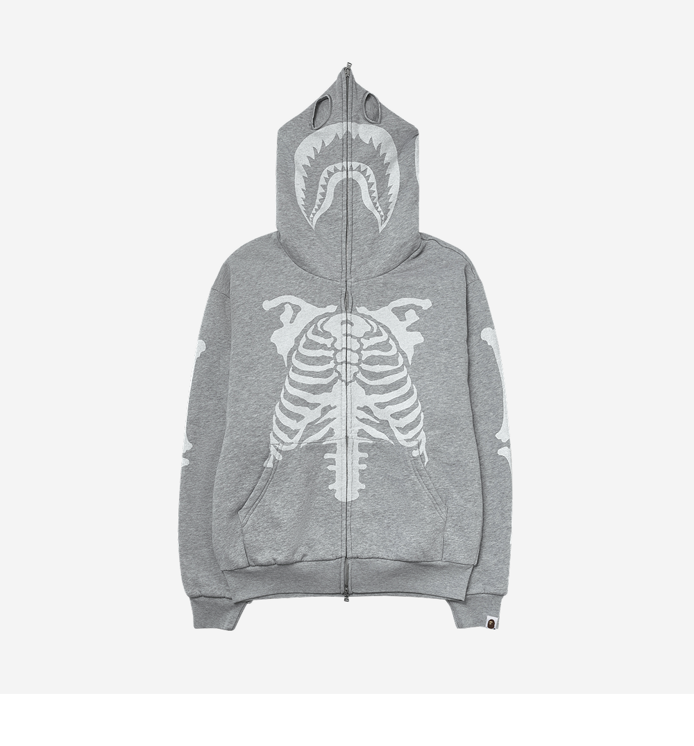 BAPE Skeleton Shark Heavy Washed Cropped Fit Full Zip Hoodie Gray