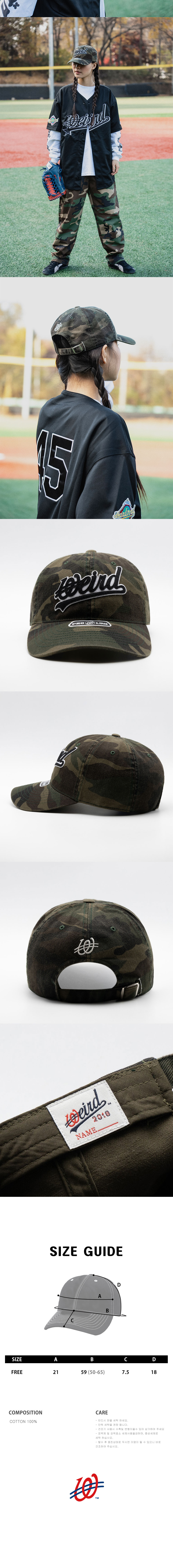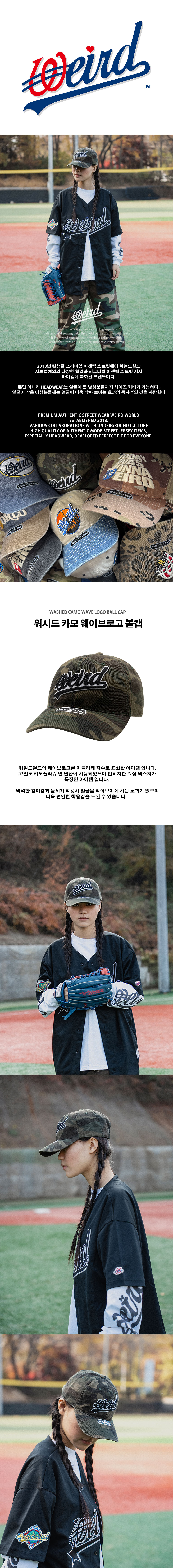 위얼드월드 워시드 카모 웨이브로고 볼캡
