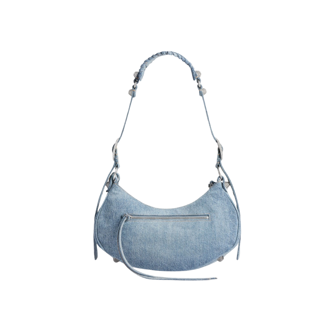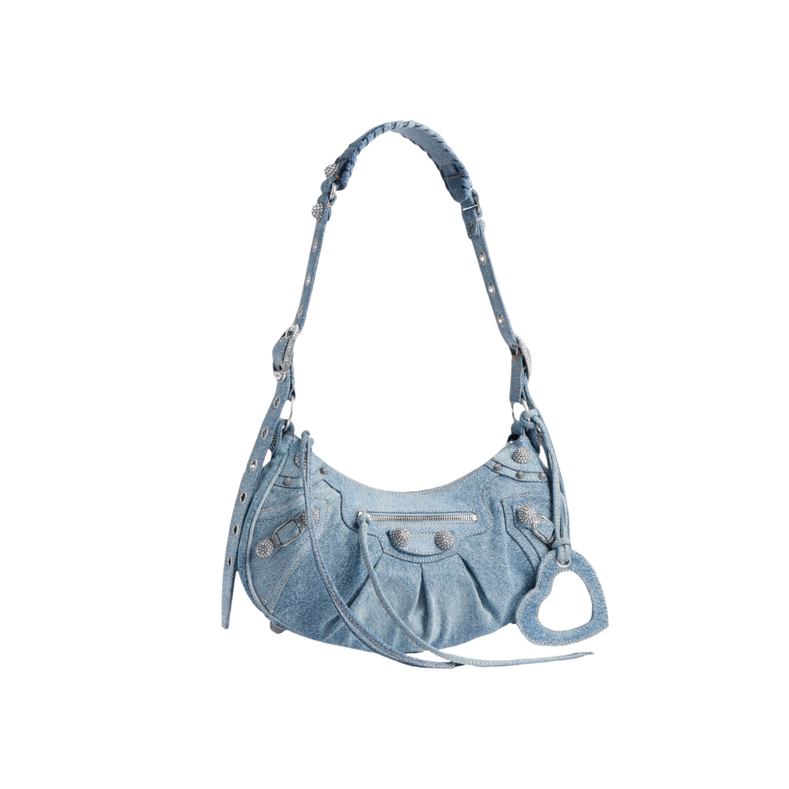 Balenciaga Rhinestones Denim Le Cagole Small Shoulder Bag Blue