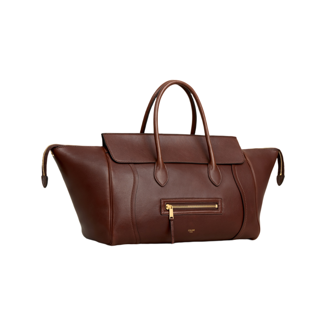 Celine Medium New Luggage in Supple Shiny Lambskin Deep Brown