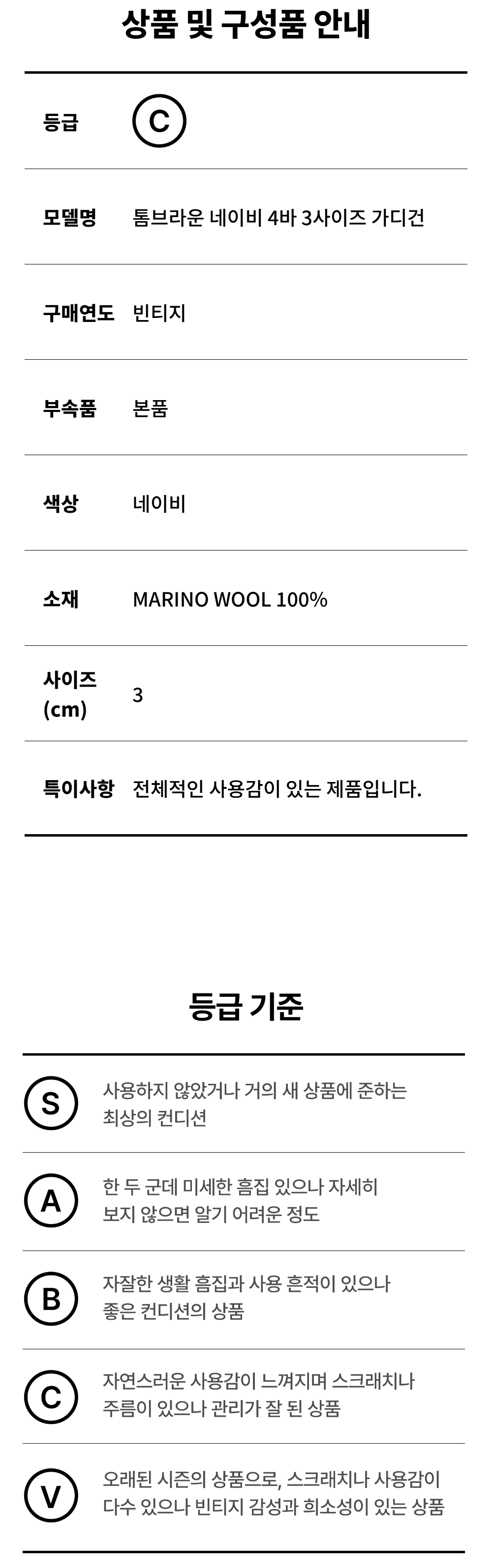 톰브라운 네이비 4바 3사이즈 가디건 A-C40865