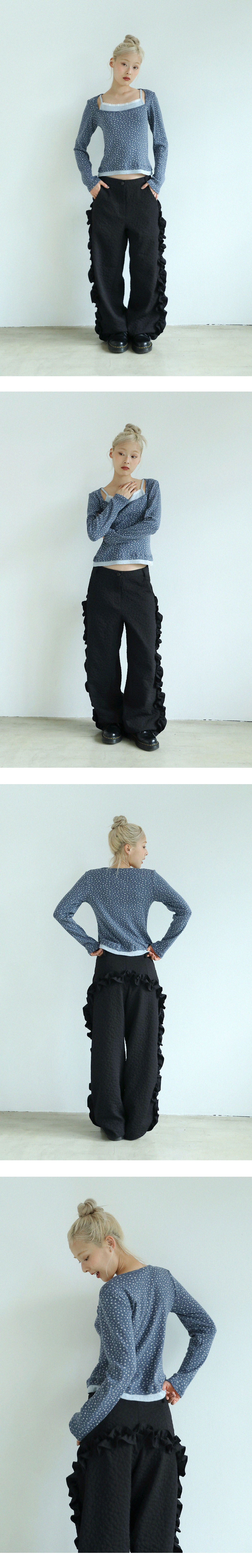 플라워 패턴과 러플이 포인트 된 스트링 팬츠 입니다.