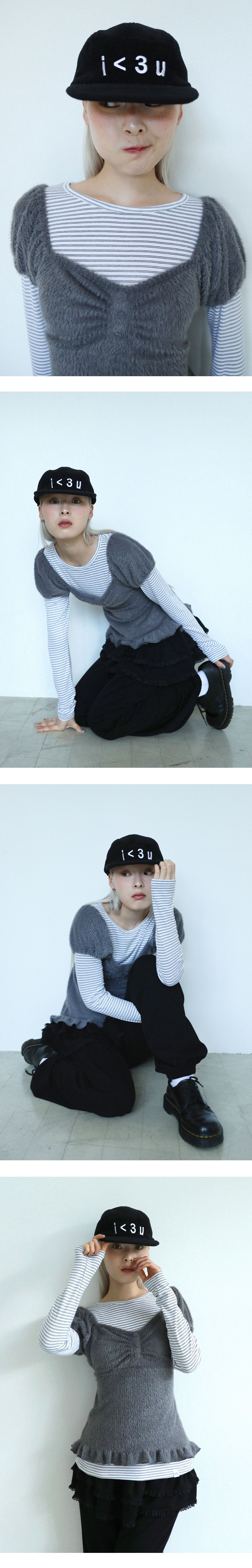 25FW [ I < 3 u ] 컬렉션 네임 자수가 포인트 된 캠프캡 입니다.