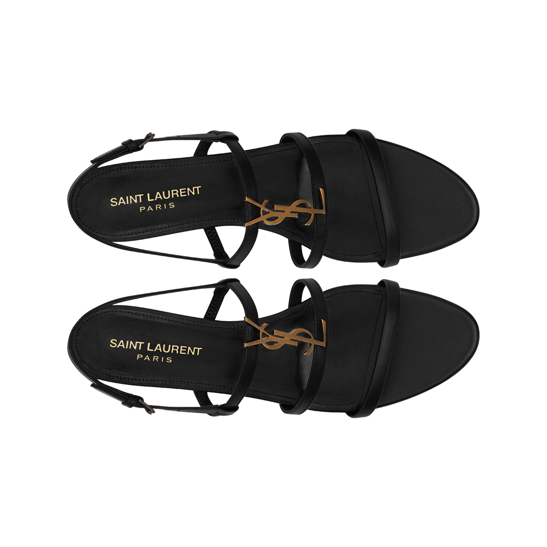 (W) 생로랑 스무스 레더 골드 모노그램 카산드라 플랫 샌들 블랙