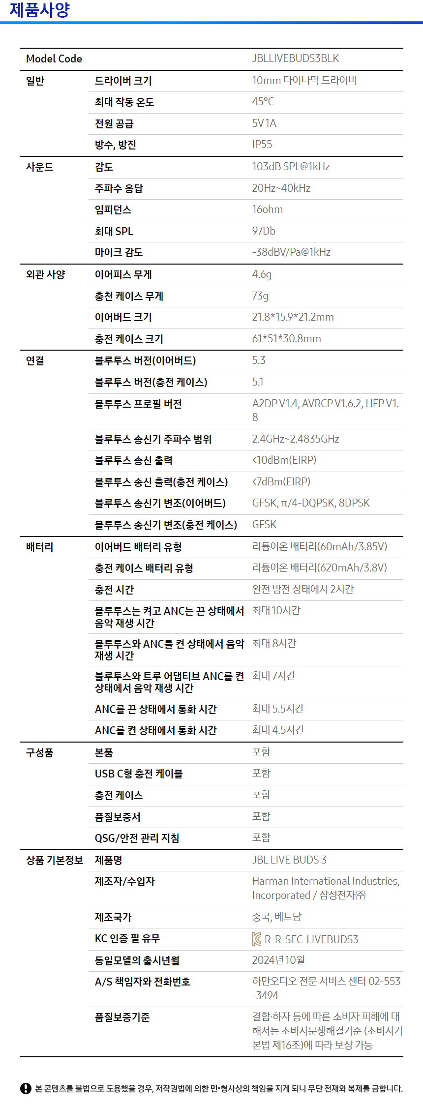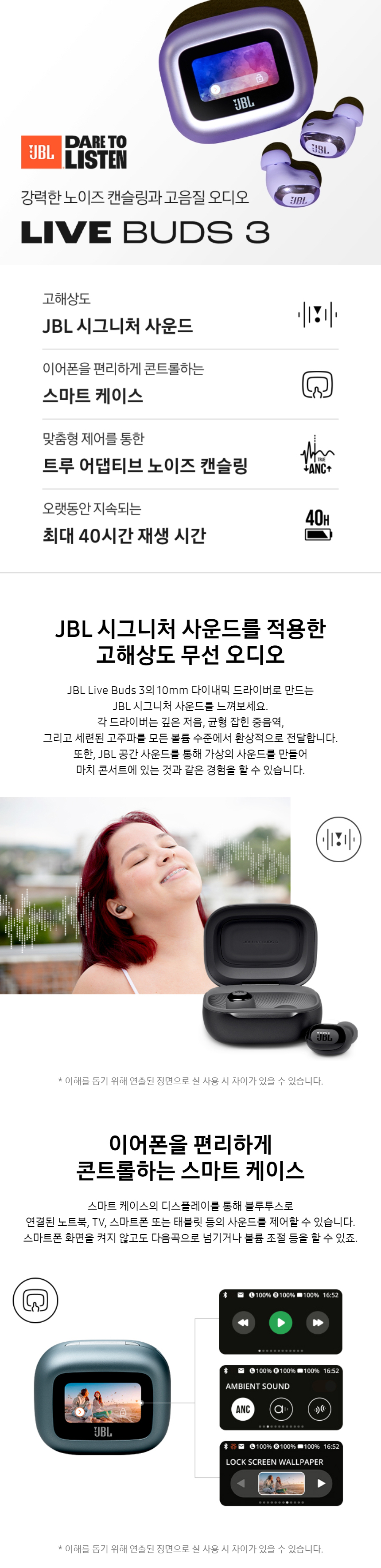 제이비엘 라이브 버즈3 노이즈캔슬링 블루투스 이어폰 블루