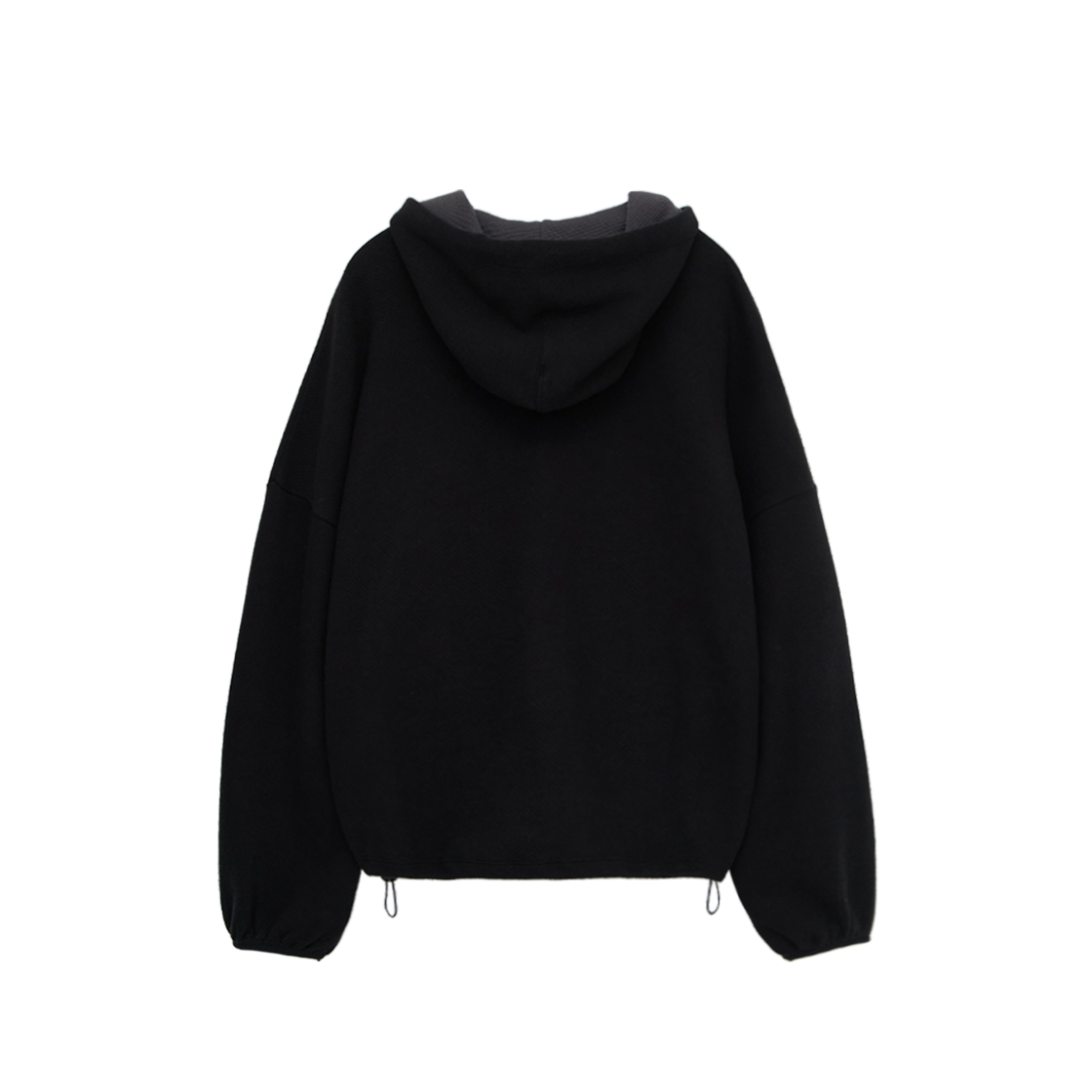 human volume hoodie - 포근한 착용감 - 후드 배색 안감 - 드롭 숄더 - 크롭한 밸런스 - 소매 배색 테이핑 - 투포켓 - 밑단 스트링 *모델: 170 중반 / 마른 체형, 3사이즈 착용