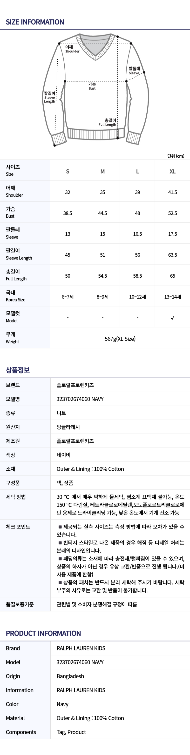 [15% 쿠폰] (키즈) 폴로랄프로렌 케이블 니트웨어 네이비 - 25SS