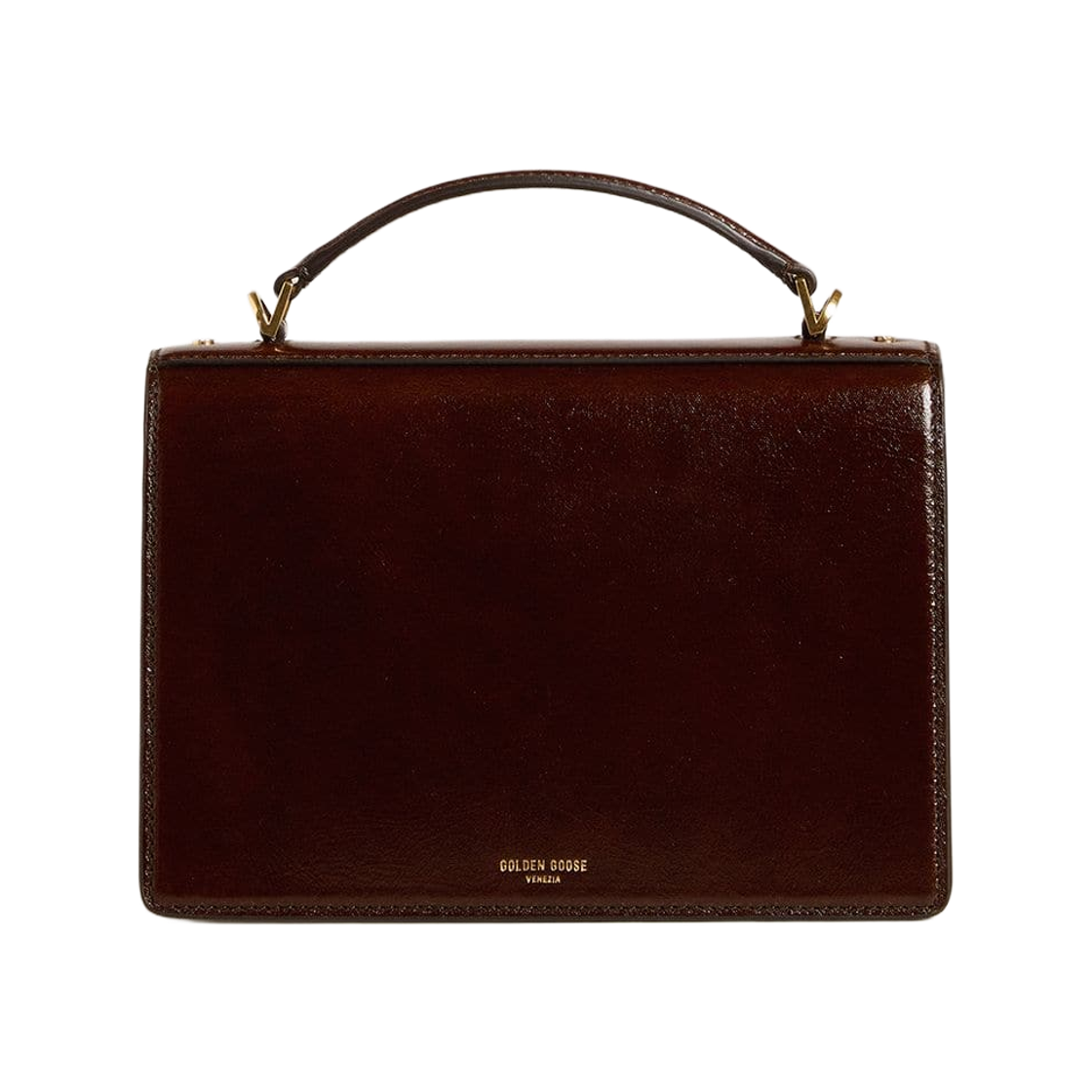 Golden Goose Gold Detail Laminated Leather Venezia Bag Dark Brown