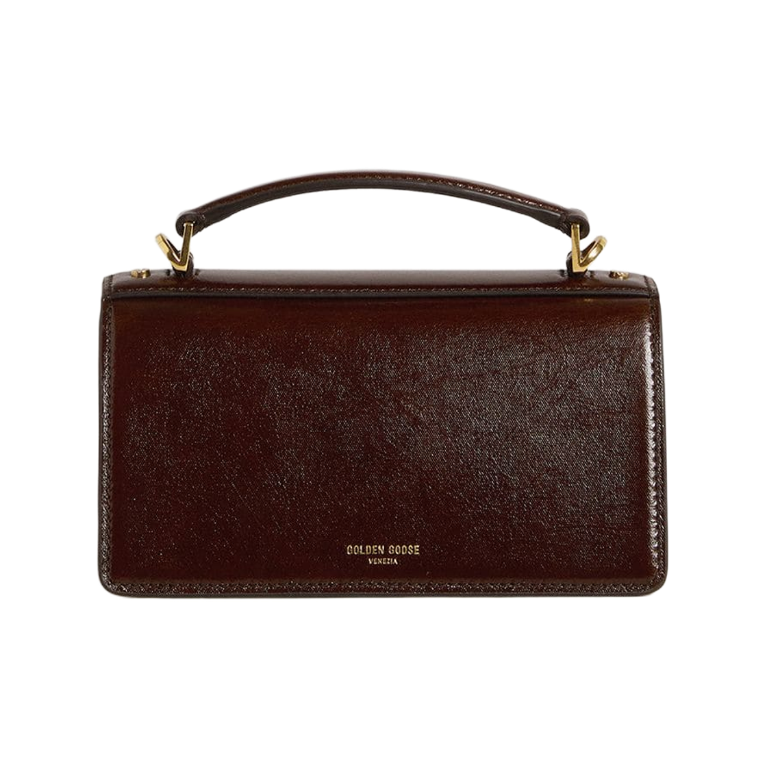 Golden Goose Gold Detail Laminated Leather Small Venezia Bag Dark Brown