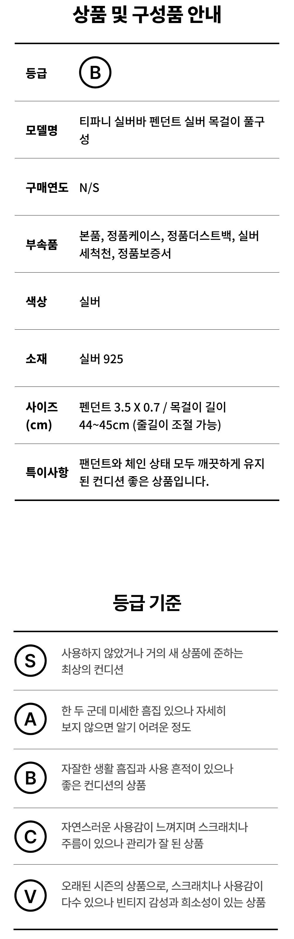 티파니앤코 실버바 펜던트 실버 목걸이 풀구성 NO.104