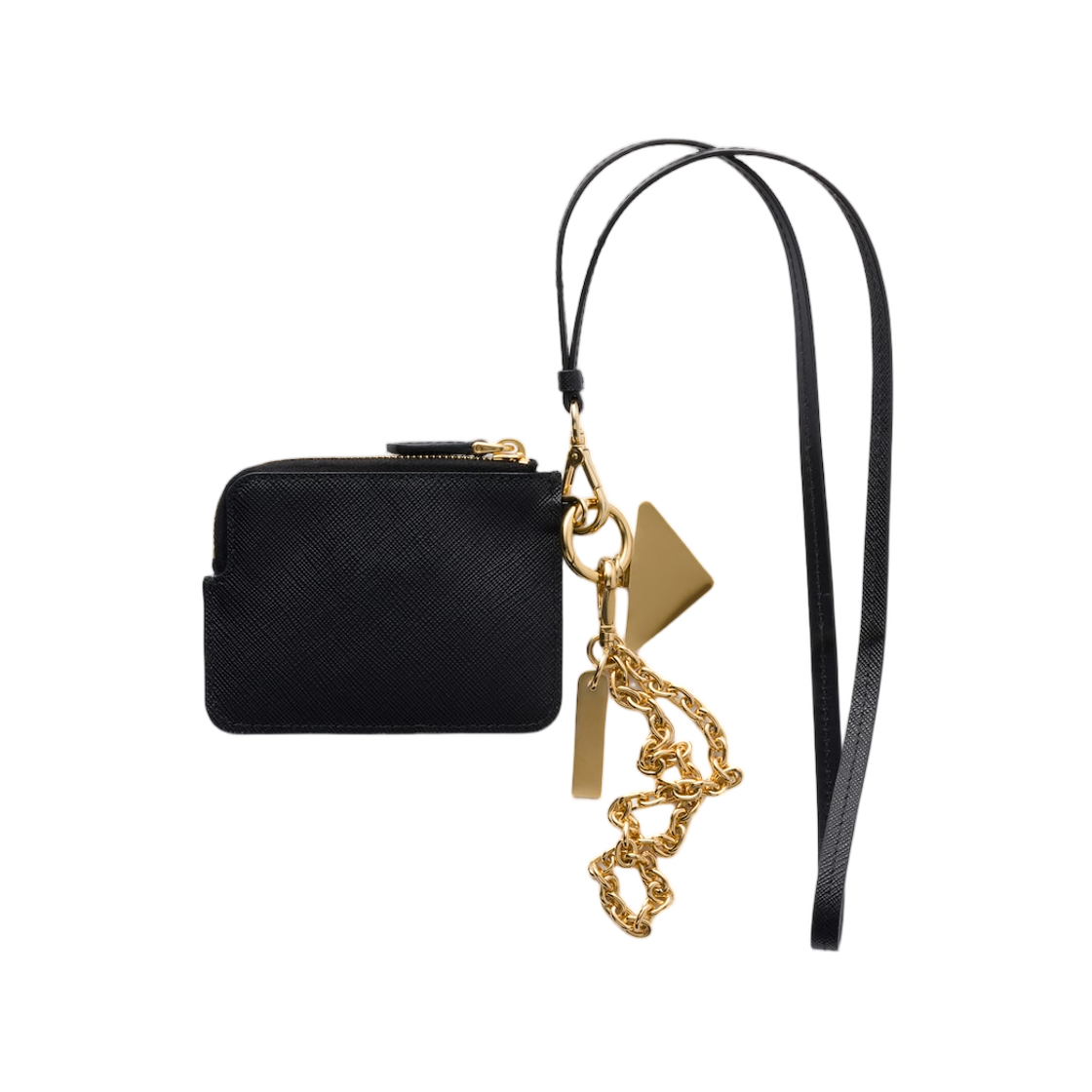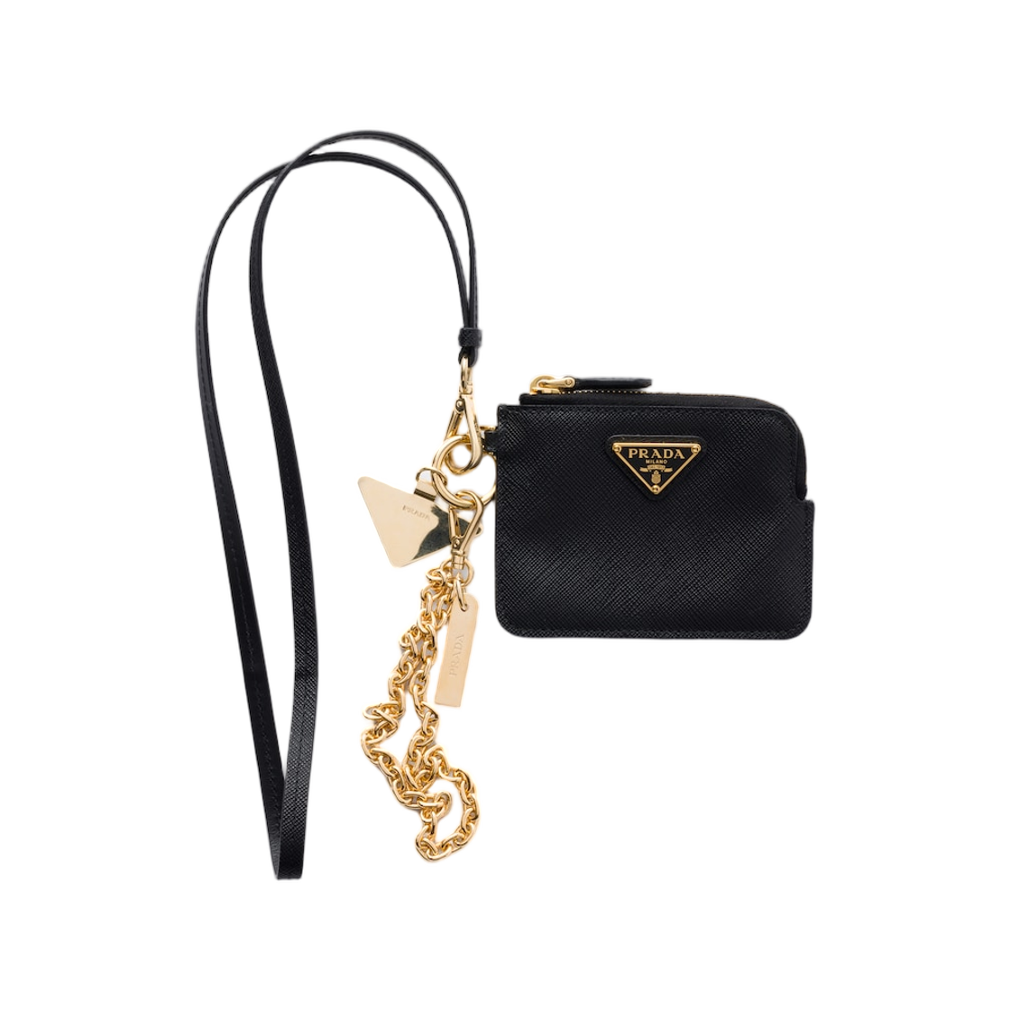 Prada Saffiano Leather Card Holder with Shoulder Strap Black