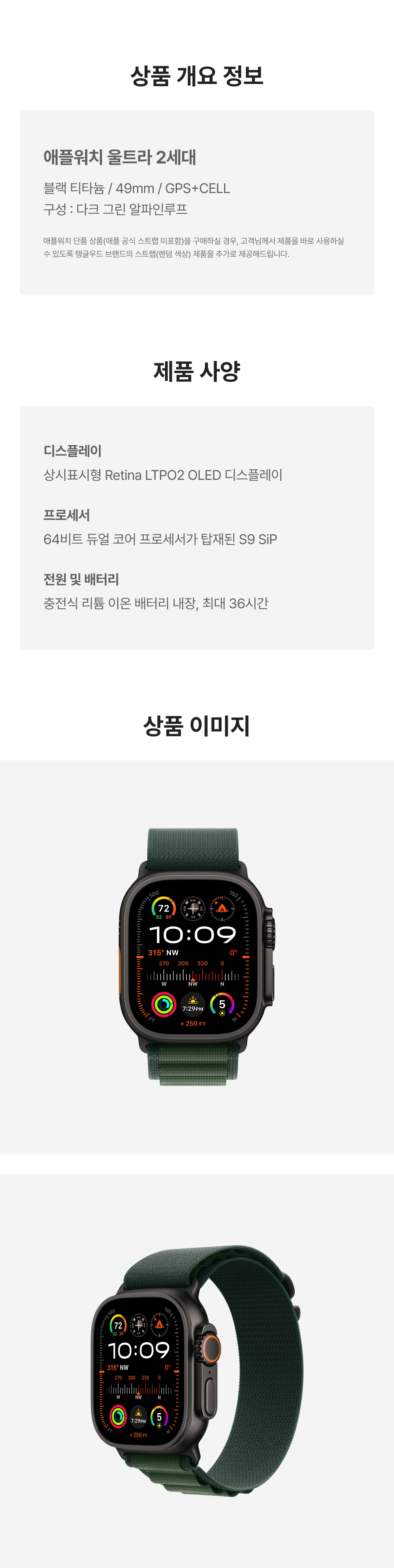 [A등급] 리퍼비시 애플워치 울트라 2 49mm 블랙 티타늄 케이스 알파인 루프 다크 그린