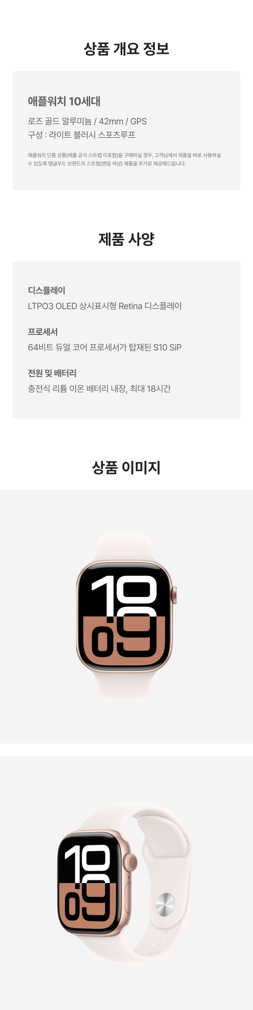 [A등급] 리퍼비시 애플워치 10 46mm GPS 로즈 골드 알루미늄 케이스 스포츠 밴드 라이트 블러시