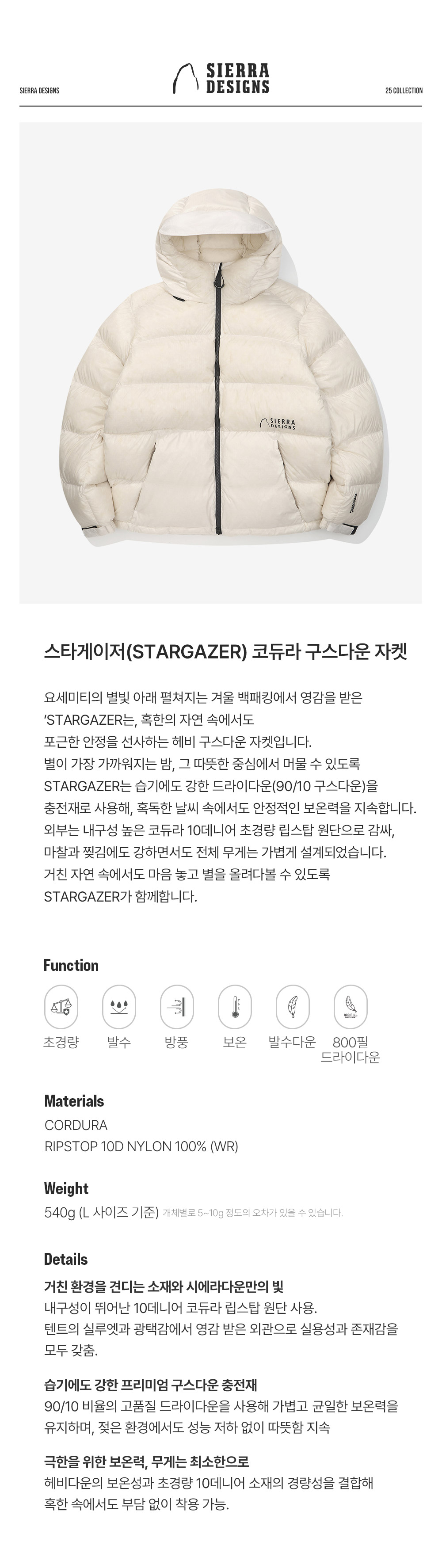 시에라디자인 스타게이저 코듀라 구스다운 자켓 아이보리
