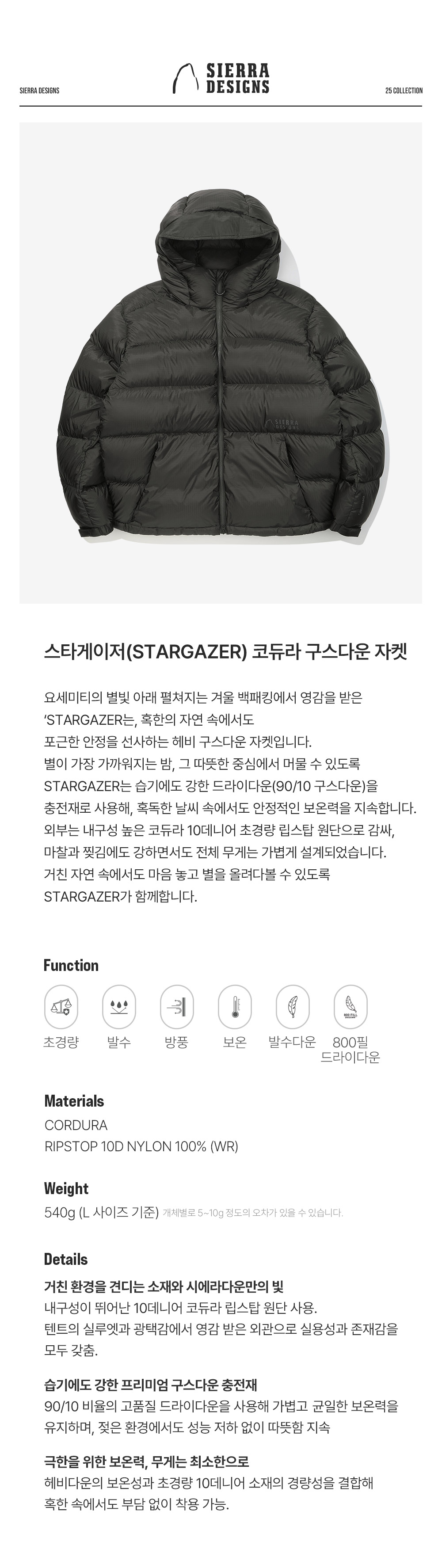 시에라디자인 스타게이저 코듀라 구스다운 자켓 블랙