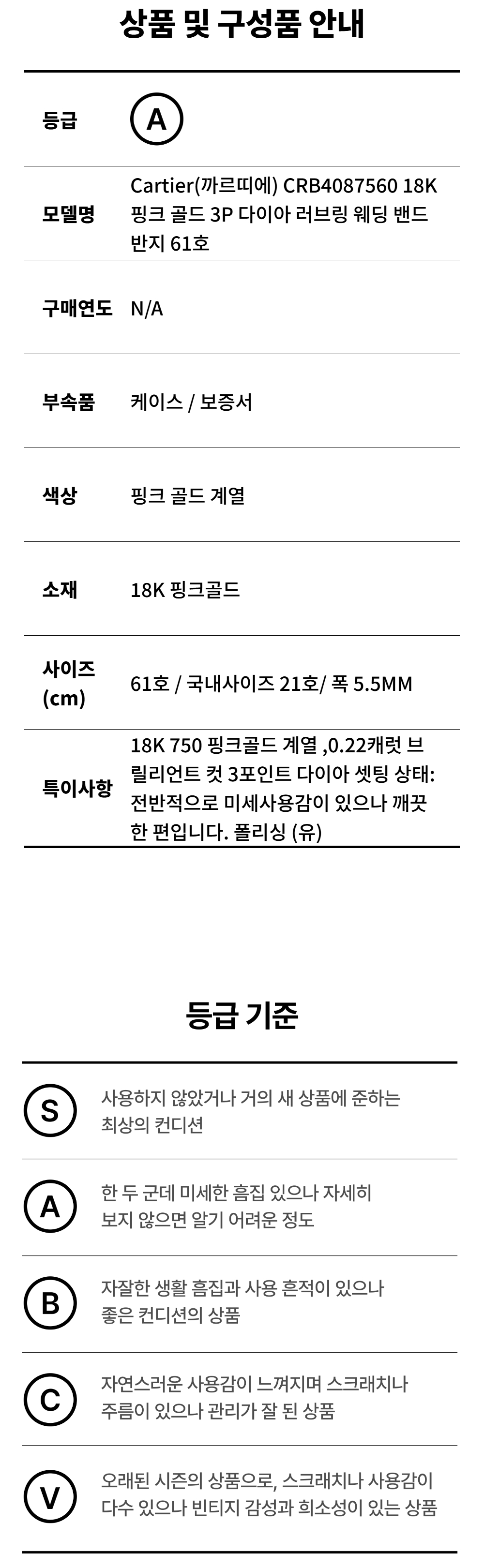 까르띠에 CRB4087560 18K 핑크 골드 3P 다이아 러브링 웨딩 밴드 반지 61호
