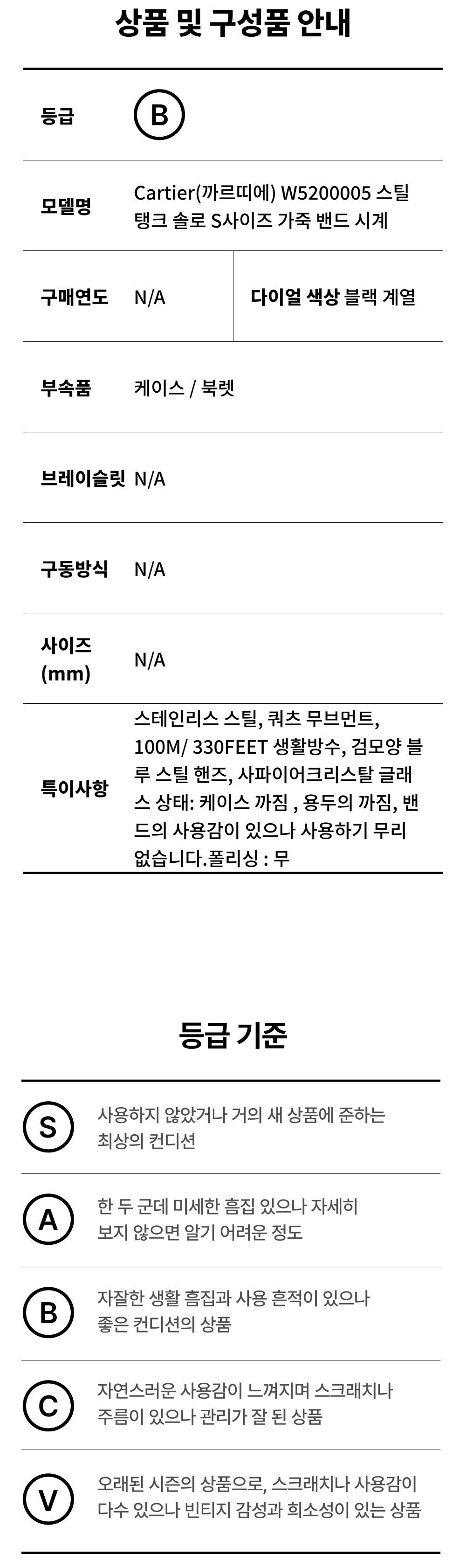 까르띠에 W5200005 스틸 탱크 솔로 S사이즈 가죽 밴드 시계