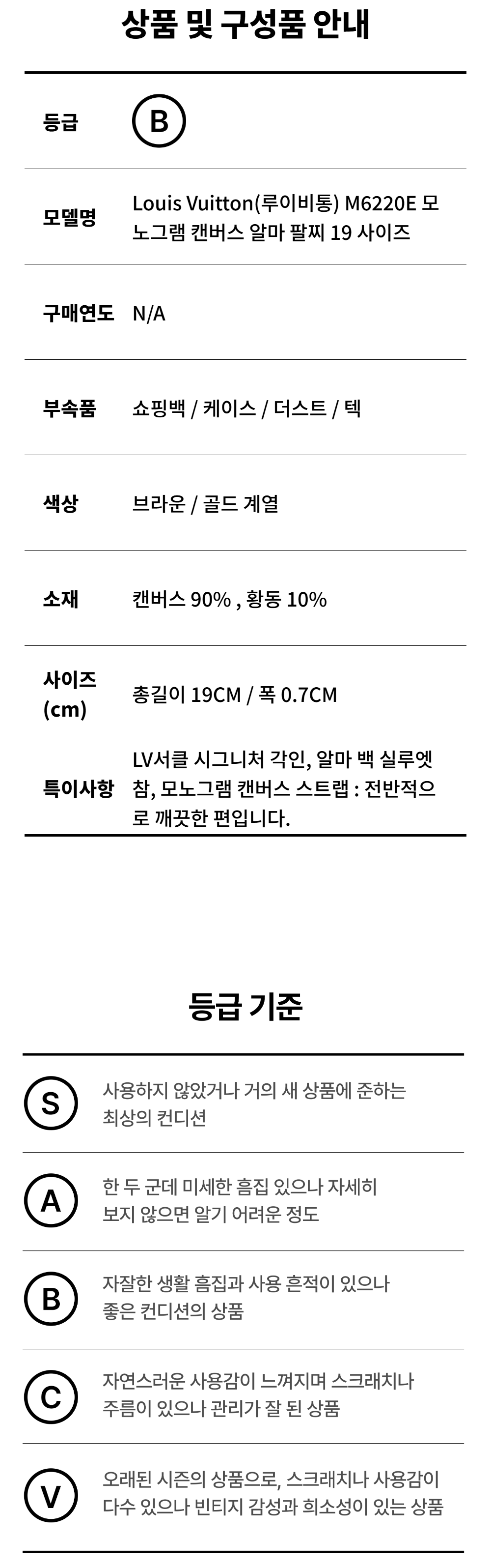 루이비통 M6220E 모노그램 캔버스 알마 팔찌 19 사이즈