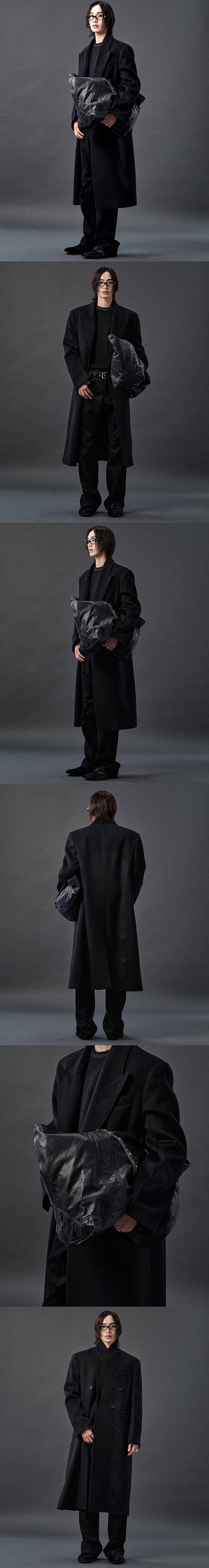울-캐시미어 블렌드 원단으로 제작된 더블브레스티드 코트입니다. 넓은 피크드 라펠과 깊은 V존이 구조적인 밸런스를 이루며, 여유 있는 숄더 라인과 맥시한 기장감으로 완성되었습니다. 밀도 높은 조직이 형태감을 유지하며, 고급스럽고 안정된 실루엣을 형성합니다. -DETAIL- 세미 오버 실루엣 울-캐시미어 블렌드 원단 더블브레스티드 버튼 여밈 피크드 라펠 라펠 히든 버튼을 통한 2WAY 연출 천연 소뿔단추 소매 리얼 버튼