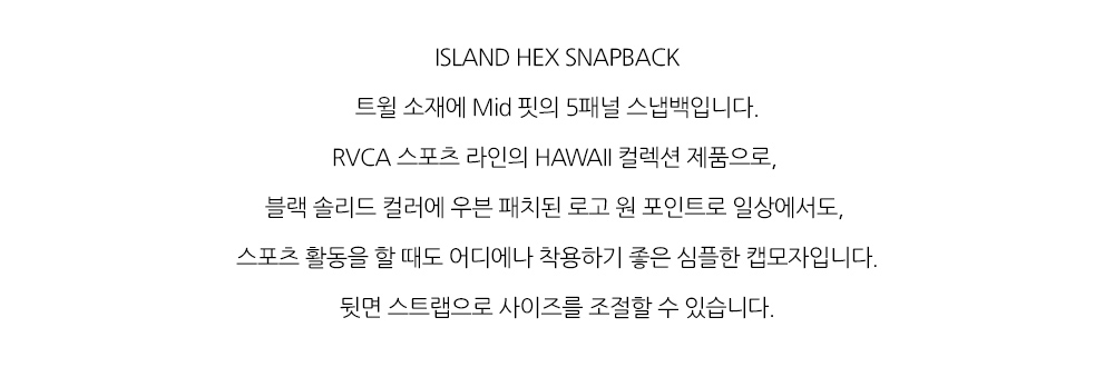 루카 아일랜드 헥스 스냅백 (VF33CP008BLK)