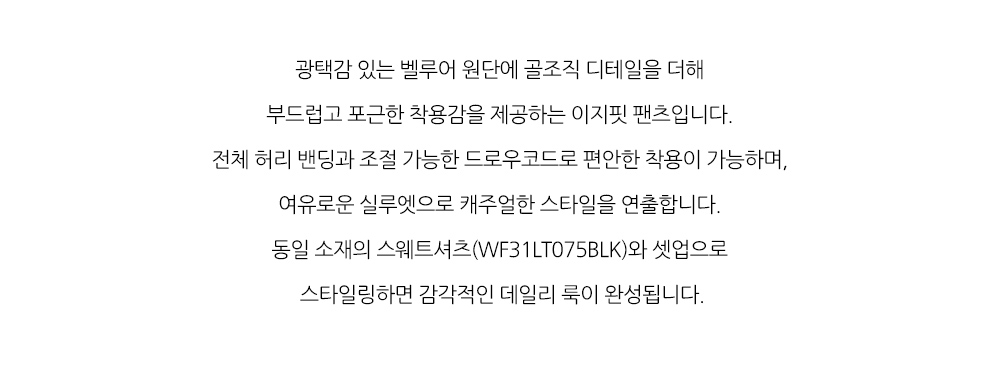 빌라봉 여성 니트 벨루어 x 리브 맨투맨 (WF31LT075BLK)